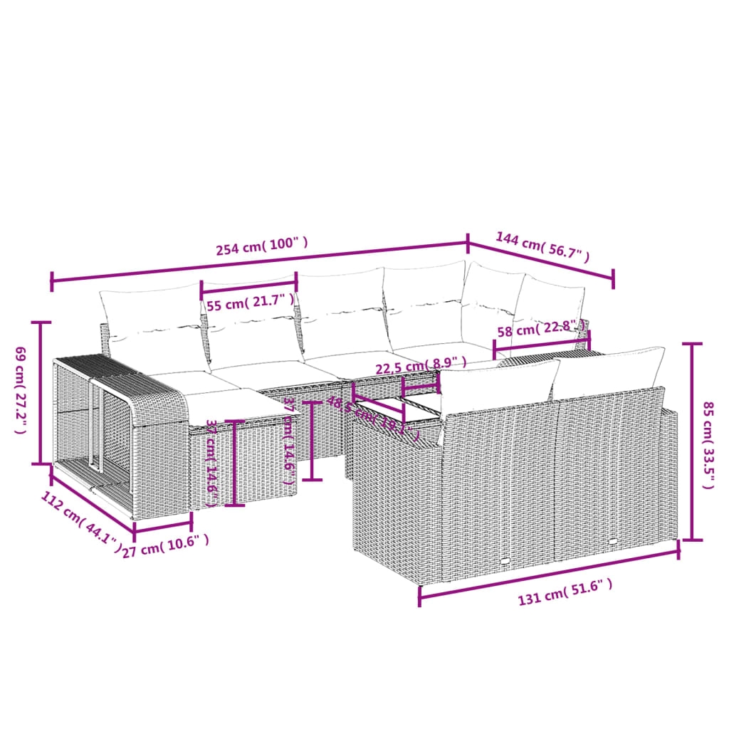 Diese Garten-Sofagarnitur ist die perfekte Ergänzung zu deinem Garten, deiner Terrasse oder deinem Innenhof. Sie bietet einen bequemen und einladenden Platz, um mit Familie und Freunden zu plaudern oder dich einfach nur zu entspannen und das Leben im Freien zu genießen. Langlebiges Material: PE-Rattan, auch als Poly Rattan bekannt, ist ein robustes, pflegeleichtes synthetisches Material, das die Optik von natürlichem Rattan aufweist. Es kennzeichnet sich durch ein geringes Eigengewicht und lässt sich einfach reinigen. Aufgrund seiner Haltbarkeit und Witterungsbeständigkeit wird es häufig bei der Herstellung von Gartenmöbeln verwendet.Stauraum mit wasserfestem Beutel: Jedes Gartensofa verfügt über ein Staufach unter der Sitzfläche, das mit einem wasserfesten Beutel zur Aufbewahrung von Kissen, Spielzeug und anderen Gegenständen versehen ist. Die Kissen sind mit Bezügen versehen und lassen sich mit Klettverschlüssen fest und sicher an den Sofas befestigen.Tischplatte aus Glas: Die Tischplatte des Gartentisches besteht aus starkem und langlebigem Hartglas, sodass sie leicht mit einem feuchten Tuch gereinigt werden kann und deinem Außenbereich einen Hauch von Eleganz verleiht.Abnehmbarer und waschbarer Bezug: Diese Sitzkissen verfügen über abnehmbare Bezüge für einfaches Waschen und Pflegen.Modulares Design: Dank des modularen Designs lassen sich die Gartenmöbel völlig flexibel und einfach umstellen, um deinen Außenbereich ganz individuell zu gestalten. Gut zu wissen:Wir empfehlen dir, deine Gartenmöbel mit einer wasserdichten Hülle zu schützen, um lange Zeit eine ansprechende Optik aufzuweisen.