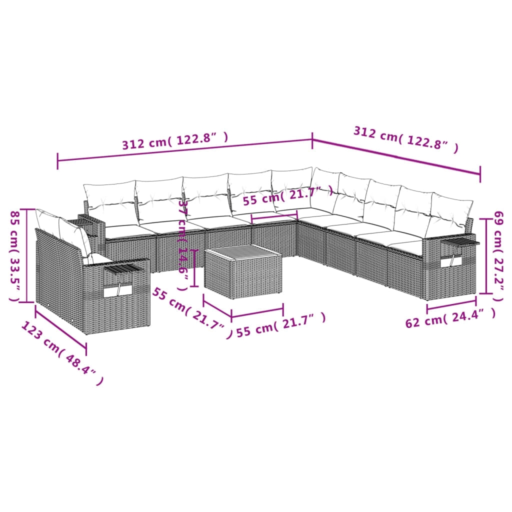 Diese Garten-Sofagarnitur ist die perfekte Ergänzung zu deinem Garten, deiner Terrasse oder deinem Innenhof. Sie bietet einen bequemen und einladenden Platz, um mit Familie und Freunden zu plaudern oder dich einfach nur zu entspannen und das Leben im Freien zu genießen. Langlebiges Material: PE-Rattan, auch als Poly Rattan bekannt, ist ein robustes, pflegeleichtes synthetisches Material, das die Optik von natürlichem Rattan aufweist. Es kennzeichnet sich durch ein geringes Eigengewicht und lässt sich einfach reinigen. Aufgrund seiner Haltbarkeit und Witterungsbeständigkeit wird es häufig bei der Herstellung von Gartenmöbeln verwendet.Praktischer Beistelltisch: Dieses Gartensofa verfügt über klappbare Ablagen mit Gasfedern an den Armlehnen, auf denen du verschieden Sachen griffbereit aufbewahren kannst.Stabile und pflegeleichte Tischplatte: Dieser Gartentisch besitzt eine Tischplatte aus Akazienholz, die robust und langlebig ist und sich leicht mit einem feuchten Tuch reinigen lässt.Abnehmbarer und waschbarer Bezug: Diese Sitzkissen verfügen über abnehmbare Bezüge für einfaches Waschen und Pflegen.Modulares Design: Dank des modularen Designs lassen sich die Gartenmöbel völlig flexibel und einfach umstellen, um deinen Außenbereich ganz individuell zu gestalten. Gut zu wissen:Wir empfehlen dir, deine Gartenmöbel mit einer wasserdichten Hülle zu schützen, um lange Zeit eine ansprechende Optik aufzuweisen.