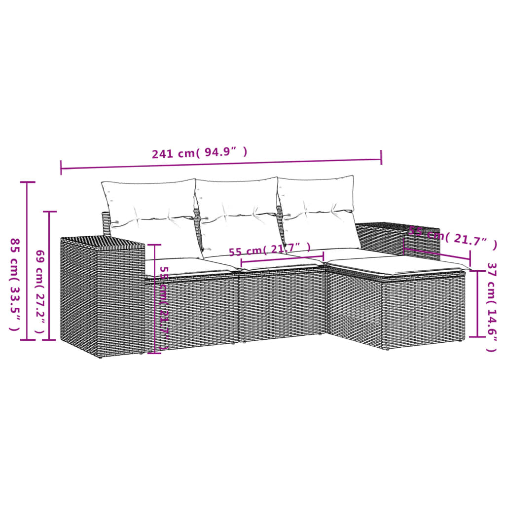 Diese Garten-Sofagarnitur ist die perfekte Ergänzung zu deinem Garten, deiner Terrasse oder deinem Innenhof. Sie bietet einen bequemen und einladenden Platz, um mit Familie und Freunden zu plaudern oder dich einfach nur zu entspannen und das Leben im Freien zu genießen. Langlebiges Material: PE-Rattan, auch als Poly Rattan bekannt, ist ein robustes, pflegeleichtes synthetisches Material, das die Optik von natürlichem Rattan aufweist. Es kennzeichnet sich durch ein geringes Eigengewicht und lässt sich einfach reinigen. Aufgrund seiner Haltbarkeit und Witterungsbeständigkeit wird es häufig bei der Herstellung von Gartenmöbeln verwendet.Bequemes Sitzerlebnis: Dieser Gartensessel mit dick gepolsterten Kissen bietet ein angenehmes Sitzgefühl.Abnehmbarer und waschbarer Bezug: Diese Sitzkissen verfügen über abnehmbare Bezüge für einfaches Waschen und Pflegen.Modulares Design: Dank des modularen Designs lassen sich die Gartenmöbel völlig flexibel und einfach umstellen, um deinen Außenbereich ganz individuell zu gestalten. Gut zu wissen:Wir empfehlen dir, deine Gartenmöbel mit einer wasserdichten Hülle zu schützen, um lange Zeit eine ansprechende Optik aufzuweisen.