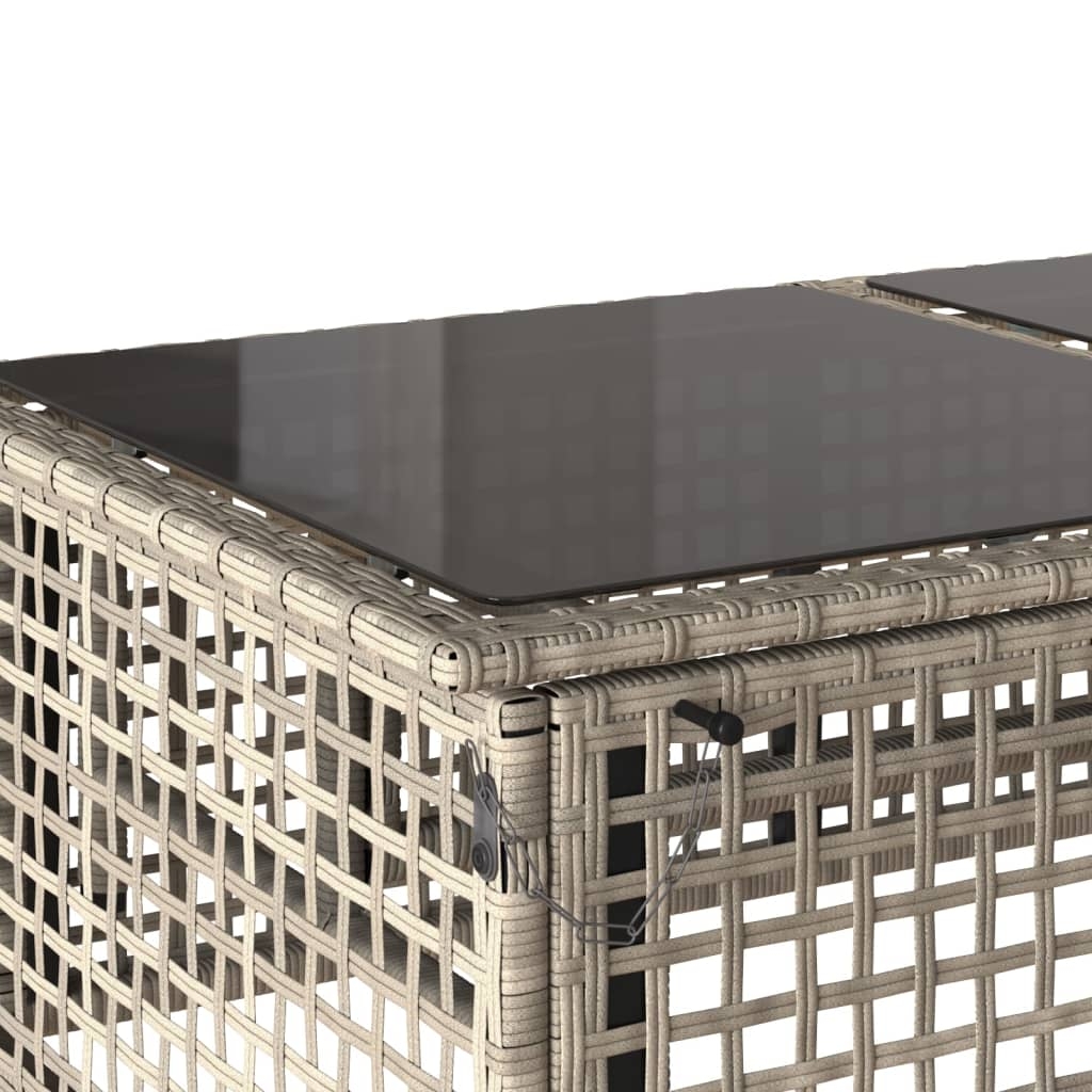 Diese Garten-Sofagarnitur ist die perfekte Ergänzung zu deinem Garten, deiner Terrasse oder deinem Innenhof. Sie bietet einen bequemen und einladenden Platz, um mit Familie und Freunden zu plaudern oder dich einfach nur zu entspannen und das Leben im Freien zu genießen. Langlebiges Material: PE-Rattan, auch als Poly Rattan bekannt, ist ein robustes, pflegeleichtes synthetisches Material, das die Optik von natürlichem Rattan aufweist. Es kennzeichnet sich durch ein geringes Eigengewicht und lässt sich einfach reinigen. Aufgrund seiner Haltbarkeit und Witterungsbeständigkeit wird es häufig bei der Herstellung von Gartenmöbeln verwendet.Verstellbare Tischplatte: Die Tischplatte lässt sich anheben, um den Gartentisch höher zu machen und ihn von einem Couchtisch in einen Esstisch zu verwandeln. Er eignet sich daher perfekt für Gäste oder Mahlzeiten im Freien.Bequemes Sitzerlebnis: Die Gartengarnitur wird samt dick gepolsterten Kissen geliefert, um höchsten Sitzkomfort zu bieten.Abnehmbarer und waschbarer Bezug: Diese Sitzkissen verfügen über abnehmbare Bezüge für einfaches Waschen und Pflegen.Tischplatte aus Glas: Die Tischplatte des Gartentisches besteht aus starkem und langlebigem Hartglas, sodass sie leicht mit einem feuchten Tuch gereinigt werden kann und deinem Außenbereich einen Hauch von Eleganz verleiht. Gut zu wissen:Wir empfehlen dir, deine Gartenmöbel mit einer wasserdichten Hülle zu schützen, um lange Zeit eine ansprechende Optik aufzuweisen.