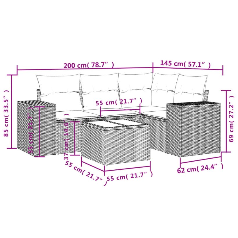 Diese Garten-Sofagarnitur ist die perfekte Ergänzung zu deinem Garten, deiner Terrasse oder deinem Innenhof. Sie bietet einen bequemen und einladenden Platz, um mit Familie und Freunden zu plaudern oder dich einfach nur zu entspannen und das Leben im Freien zu genießen. Langlebiges Material: PE-Rattan, auch als Poly Rattan bekannt, ist ein robustes, pflegeleichtes synthetisches Material, das die Optik von natürlichem Rattan aufweist. Es kennzeichnet sich durch ein geringes Eigengewicht und lässt sich einfach reinigen. Aufgrund seiner Haltbarkeit und Witterungsbeständigkeit wird es häufig bei der Herstellung von Gartenmöbeln verwendet.Tischplatte aus Glas: Die Tischplatte des Gartentisches besteht aus starkem und langlebigem Hartglas, sodass sie leicht mit einem feuchten Tuch gereinigt werden kann und deinem Außenbereich einen Hauch von Eleganz verleiht.Bequemes Sitzerlebnis: Dieser Gartensessel mit dick gepolsterten Kissen bietet ein angenehmes Sitzgefühl.Abnehmbarer und waschbarer Bezug: Diese Sitzkissen verfügen über abnehmbare Bezüge für einfaches Waschen und Pflegen.Modulares Design: Dank des modularen Designs lassen sich die Gartenmöbel völlig flexibel und einfach umstellen, um deinen Außenbereich ganz individuell zu gestalten. Gut zu wissen:Wir empfehlen dir, deine Gartenmöbel mit einer wasserdichten Hülle zu schützen, um lange Zeit eine ansprechende Optik aufzuweisen.
