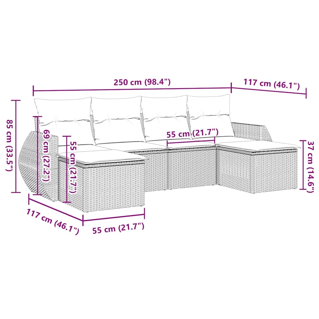 Diese Garten-Sofagarnitur ist die perfekte Ergänzung zu deinem Garten, deiner Terrasse oder deinem Innenhof. Sie bietet einen bequemen und einladenden Platz, um mit Familie und Freunden zu plaudern oder dich einfach nur zu entspannen und das Leben im Freien zu genießen. Langlebiges Material: PE-Rattan, auch als Poly Rattan bekannt, ist ein robustes, pflegeleichtes synthetisches Material, das die Optik von natürlichem Rattan aufweist. Es kennzeichnet sich durch ein geringes Eigengewicht und lässt sich einfach reinigen. Aufgrund seiner Haltbarkeit und Witterungsbeständigkeit wird es häufig bei der Herstellung von Gartenmöbeln verwendet.Bequemes Sitzerlebnis: Dieser Gartensessel mit dick gepolsterten Kissen bietet ein angenehmes Sitzgefühl.Abnehmbarer und waschbarer Bezug: Diese Sitzkissen verfügen über abnehmbare Bezüge für einfaches Waschen und Pflegen.Modulares Design: Dank des modularen Designs lassen sich die Gartenmöbel völlig flexibel und einfach umstellen, um deinen Außenbereich ganz individuell zu gestalten. Gut zu wissen:Wir empfehlen dir, deine Gartenmöbel mit einer wasserdichten Hülle zu schützen, um lange Zeit eine ansprechende Optik aufzuweisen.