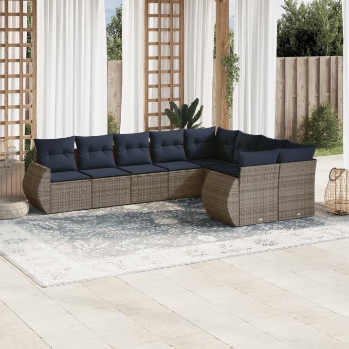 Dieses Gartensofa-Set ist die perfekte Ergänzung für Ihren Garten, Ihre Terrasse oder Ihren Innenhof und bietet einen komfortablen und einladenden Platz zum Plaudern mit Familie und Freunden oder einfach zum Entspannen und Genießen der Natur. Langlebiges Material: PE-Rattan, auch bekannt als Polyrattan, ist ein starkes, pflegeleichtes synthetisches Material, das wie natürliches Rattan aussieht. Es ist leicht, einfach zu reinigen und wird aufgrund seiner Langlebigkeit und Wetterbeständigkeit häufig für Gartenmöbel verwendet.Bequemes Sitzerlebnis: Diese Gartenmöbel mit dick gepolsterten Kissen bieten ein bequemes Sitzerlebnis.Abnehmbarer und waschbarer Bezug: Diese Sitzkissen verfügen über abnehmbare Bezüge zum einfachen Waschen und Pflegen.Modulares Design: Dieses Gartenmöbelset ist modular aufgebaut und daher völlig flexibel und leicht zu bewegen, sodass Sie Ihre Gartenmöbel individuell zusammenstellen können. Gut zu wissen:Damit Ihre Gartenmöbel schön bleiben, empfehlen wir Ihnen, sie mit einer wasserdichten Abdeckung zu schützen.