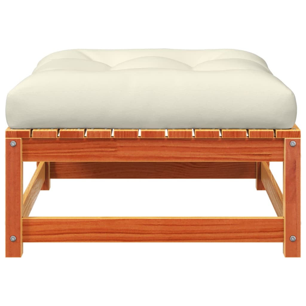 Diese Gartenhocker aus Holz mit Kissen sind eine großartige Bereicherung für deinen Garten, deine Terrasse oder deinen Innenhof, um mit Familie und Freunden zu plaudern oder einfach nur das Wetter zu genießen. Kiefern-Massivholz: Massives Kiefernholz ist ein wunderschönes Naturmaterial, das eine gerade Maserung aufweist; die Aststellen verleihen dem Material seine charakteristische, rustikale Optik. Aus massivem Kiefernholz gefertigt, ist der Garten-Hocker langlebig und stabil.Bequemes Sitzerlebnis: Das dick gepolsterte Kissen bietet höchsten Sitzkomfort.Vielseitig einsetzbar: Dieser Outdoor-Hocker lässt sich als Sitzgelegenheit oder zum Ausruhen der Füße verwenden, kann aber auch als Couchtisch für Getränke, Snacks oder Dekorationen dienen.Latten-Design: Das Latten-Design verhindert effektiv die Ansammlung von Wasser auf der Outdoor-Ottomane, sodass die Sitzfläche trocken bleibt und Holzfäule verhindert wird.Modulares Design: Diese Outdoor-Ottomane ist völlig flexibel und leicht umzustellen, um sich an jede Umgebung anzupassen. Du kannst sie mit anderen modularen Sofaelementen kombinieren, die im Dropdown-Menü zur Auswahl stehen, um dein persönliches Outdoor-Lounge-Set nach Belieben zu erstellen! Gut zu wissen:Wir empfehlen dir, deine Gartenmöbel mit einer wasserdichten Hülle zu schützen, um lange Zeit eine ansprechende Optik aufzuweisen.