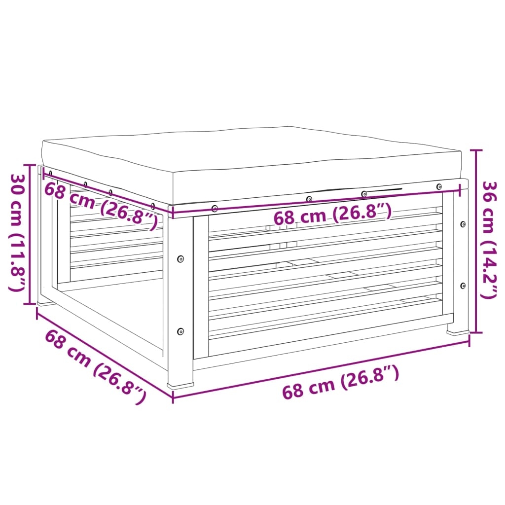 Dieser Gartenhocker aus Holz mit Kissen ist eine großartige Ergänzung für deinen Garten, deine Terrasse oder deinen Innenhof. Auf diesem Outdoor-Fußhocker sitzend, lässt es sich mit Familie und Freunden plaudern oder einfach nur das Wetter zu genießen. Robustes und stabiles Gestell: Massives Akazienholz ist für seine Festigkeit und Haltbarkeit bekannt. Seine vielfältige Farbe und seine einzigartige Maserung verleihen ihm eine attraktive Optik. Dank seiner ausgezeichneten Stabilität und Witterungsbeständigkeit eignet es sich ideal für die Herstellung von Innen- und Außenmöbeln. Außerdem sorgt der pulverbeschichtete Stahlrahmen dafür, dass die Gartenmöbel stark und stabil für den täglichen Gebrauch im Freien sind.Abnehmbarer und waschbarer Bezug: Das Sitzkissen verfügt über abnehmbare Bezüge für einfaches Waschen und Pflegen.Modulares Design: Dank des modularen Designs lassen sich diese Gartenmöbel völlig flexibel und einfach umstellen, um deinen Außenbereich ganz individuell zu gestalten.Breite Anwendungen: Dieser Outdoor-Hocker lässt sich als Sitzgelegenheit oder zum Ausruhen der Füße verwenden, kann aber auch als Couchtisch für Getränke, Snacks oder Dekorationen dienen. Gut zu wissen:Wir empfehlen dir, deine Gartenmöbel mit einer wasserdichten Hülle zu schützen, um lange Zeit eine ansprechende Optik aufzuweisen.
