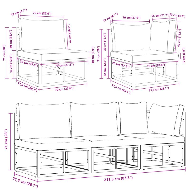 - Lieferumfang: 2 x Mittelsofa, 1 x Ecksofa