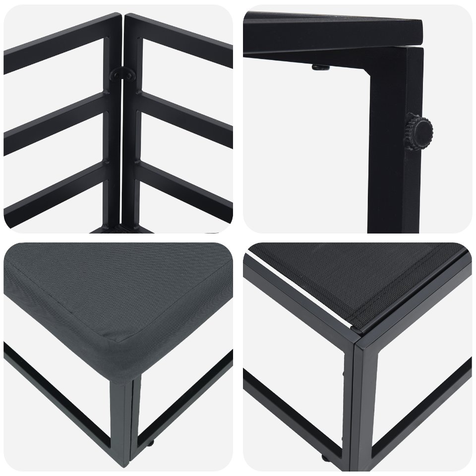 Suchst du nach einem Möbelstück, das deinem Außenbereich etwas Klasse verleiht? Dieses Set ist genau das Richtige! Es ist sowohl schick als auch praktisch und wurde designed, um die moderne Atmosphäre deiner Terrasse, deines Gartens oder Balkons zu ergänzen. Mit einem eleganten Design und klaren Linien ist es perfekt, um Freunde zu bewirten oder einfach nur abzuhängen. Aluminium-Konstruktion: Dieses Set ist aus robustem Aluminium, also stabil und langlebig. Es wird nicht rosten oder korrodieren, was es zur idealen Wahl für den Außenbereich macht. Die schlichte Oberfläche passt zu vielen Stilen, ohne zu aufdringlich zu wirken. Enthaltene Komponenten: Jedes Teil hat einen soliden Rahmen und genug Platz für komfortables Sitzen. Das Design lässt dich in verschiedenen Positionen entspannen, egal ob du eine Feier schmeißt oder einfach nur chillst. Funktionale Merkmale: Es ist leicht, sodass du die Möbel unkompliziert bewegen kannst. Das platzsparende Design funktioniert sowohl auf kleinen Terrassen als auch auf großen Veranden, was es vielseitig für jeden Außenbereich macht. Ideale Nutzung: Ob auf Balkonen, Terrassen oder in Gärten – dieses Möbel-Set passt überall hin. Egal, ob du es zu Hause im Garten, auf einer Hotelterrasse oder in einem gewerblichen Bereich nutzt, es ist eine flexible Option für Gastronomen und Hausbesitzer. Pflege und Wartung: Um immer toll auszusehen, solltest du eine wasserdichte Abdeckung benutzen, wenn das Wetter schlecht ist. Mit einem trockenen Tuch abwischen sorgt dafür, dass die Oberfläche makellos bleibt, sodass du es über viele Saisons hinweg genießen kannst.