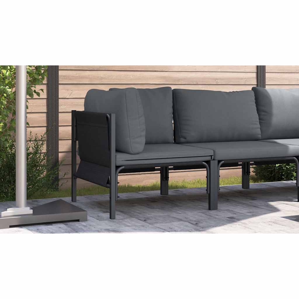 Dieses Outdoor-Sofa-Set hat einen modernen Look mit seinem schlichten Design und den klaren Linien. Es bietet dir eine flexible Sitzgelegenheit für deinen Balkon oder deine Terrasse. Der pulverbeschichtete Finish sorgt für einen schlanken Look, perfekt für jeden Außenbereich. Hier steht Komfort an erster Stelle, ideal zum Chillen allein oder mit Freunden und Familie. Robuster pulverbeschichteter Stahl: Dieses Sofa-Set ist aus pulverbeschichtetem Stahl, der sehr stabil und rostbeständig ist. Perfekt für draußen, es bleibt jahrelang in gutem Zustand und ist eine tolle Investition. Elegante anthrazitfarbene Oberfläche: Mit seiner schönen anthrazit Farbe passt dieses Set super zu deiner Außenausstattung. Der Farbton setzt einen stilvollen Akzent, egal ob du deine Terrasse aufpeppen oder einen gemütlichen Chill-out-Platz auf dem Balkon schaffen möchtest. Bequeme Sitzanordnung: Ideal zum Entspannen oder für gesellige Runden, bietet es viel Platz für verschiedene Sitzkonfigurationen. Du kannst es ganz leicht umstellen, je nach Anlass, von ruhigen Morgen bis zu lebhaften Abenden mit Freunden. UV- und wetterfest: Dieses Produkt ist so gebaut, dass es starkem Sonnenlicht und verschiedenen Wetterbedingungen standhält. Es wird unter der Sonne nicht verblassen oder schwächer werden, sodass du dir weniger Sorgen um Abnutzung machen musst und mehr Zeit hast, es zu genießen. Für einfache Pflege designt: Dieses Sofa-Set sieht einfach toll aus. Einfach abdecken, wenn du es nicht benutzt, damit deine Möbel jahrelang gut aussehen.