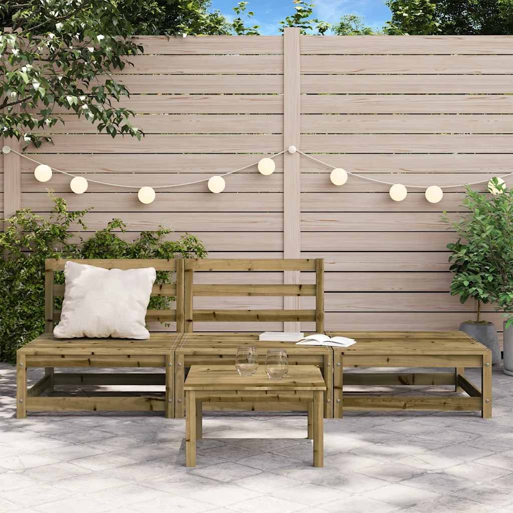 Dieses 2-Sitzer Gartensofa aus Holz mit Hocker ist eine großartige Ergänzung für deinen Garten, deine Terrasse oder deinen Innenhof, um mit Familie und Freunden zu plaudern oder einfach nur das Wetter zu genießen. Imprägniertes Holz: Massives Kiefernholz ist ein wunderschönes Naturmaterial. Kiefernholz weist eine gerade Maserung auf und die Aststellen verleihen dem Material seine charakteristische, rustikale Optik. Die Imprägnierung ist ein Konservierungsprozess, der unter Verwendung von Autoklaven durchgeführt wird. Die Druckbehandlung erhöht die Widerstandskraft gegen Verrottung und Witterung.Bequemes Sitzerlebnis: Die Rückenlehne sorgt für zusätzlichen Sitzkomfort auf dem Gartensofa.Vielseitig einsetzbar: Der Outdoor-Hocker lässt sich als Ottomane oder Fußhocker verwenden, kann aber auch als Couchtisch für Getränke, Snacks oder Dekorationen dienen.Latten-Design: Das Latten-Design verhindert effektiv die Ansammlung von Wasser, sodass die Sitzfläche trocken bleibt und Holzfäule verhindert wird.Modulares Design: Dieses modulare Gartensofa aus Holz ist völlig flexibel und leicht umzustellen, um sich an jede Umgebung anzupassen. Du kannst das Modulsofa mit anderen modularen Sofaelementen kombinieren, die im Dropdown-Menü zur Auswahl stehen, um dein persönliches Outdoor-Lounge-Set nach Belieben zu erstellen! Gut zu wissen:Wir empfehlen dir, deine Gartenmöbel mit einer wasserdichten Hülle zu schützen, um lange Zeit eine ansprechende Optik aufzuweisen.
