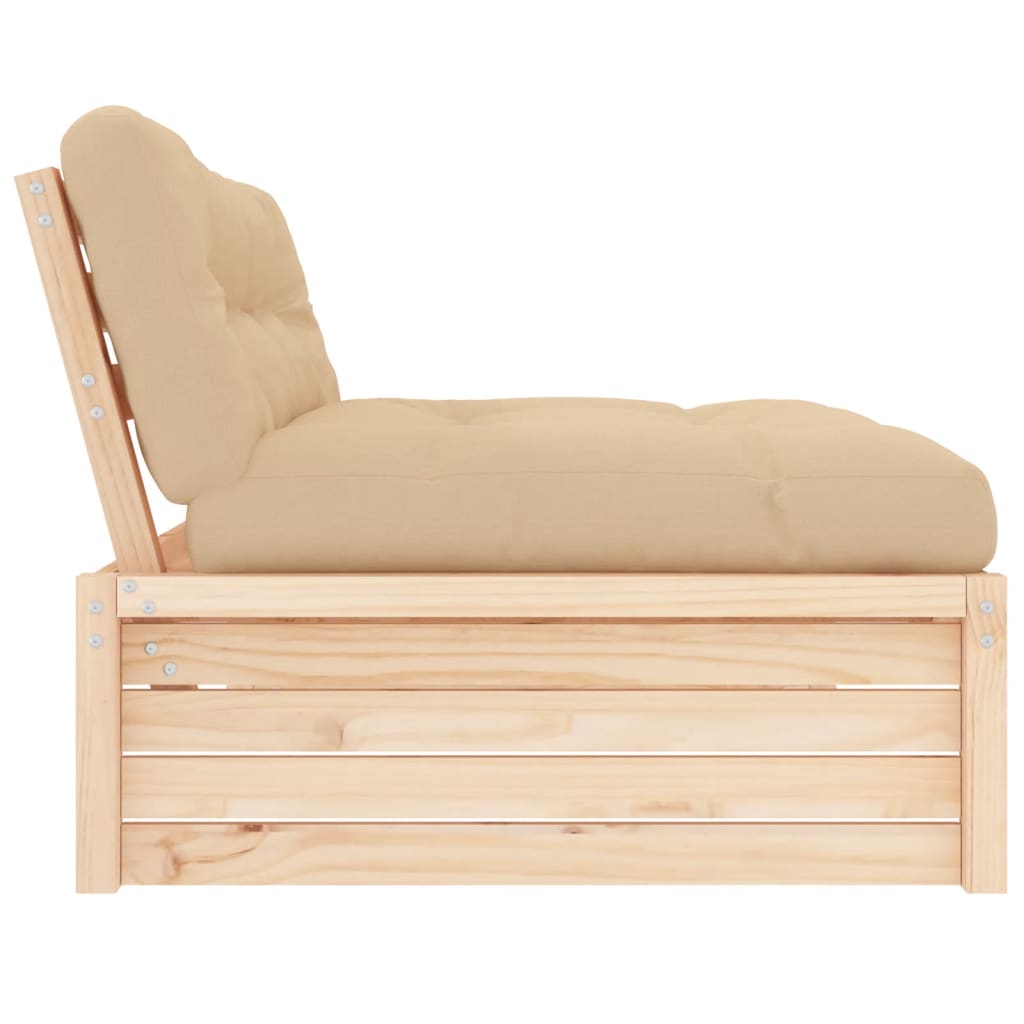 Dieses Mittelsofa aus Holz, das sich durch sein Latten-Design und weiche Kissen auszeichnet, ist eine tolle Ergänzung zu deinem Garten, Innenhof oder deiner Terrasse, um gemütliche Stunden mit deiner Familie oder deinen Freunden zu verbringen. Massives Kiefernholz: Massives Kiefernholz ist ein wunderschönes Naturmaterial. Kiefernholz weist eine gerade Maserung auf und die Aststellen verleihen dem Material seine charakteristische, rustikale Optik.Robuster und stabiler Rahmen: Dank des Holzrahmens ist das Gartensofa robust, stabil und für den täglichen Einsatz im Außenbereich geeignet.Bequemes Sitzerlebnis: Die Rückenlehne sorgt für zusätzlichen Sitzkomfort auf dem Outdoor-Sofa. Zum hohen Sitzkomfort trägt auch das dick gepolsterte Kissen bei.Modulares Design: Das modulare Sofa lässt sich flexibel und einfach umstellen. Du kannst es mit anderen modularen Elementen aus unserem Webshop kombinieren, um dein ganz persönliches Garten-Lounge-Set zusammenzustellen! Gut zu wissen:Damit deine Gartenmöbel lange schön bleiben, empfehlen wir dir, sie mit einer wasserdichten Hülle zu schützen.