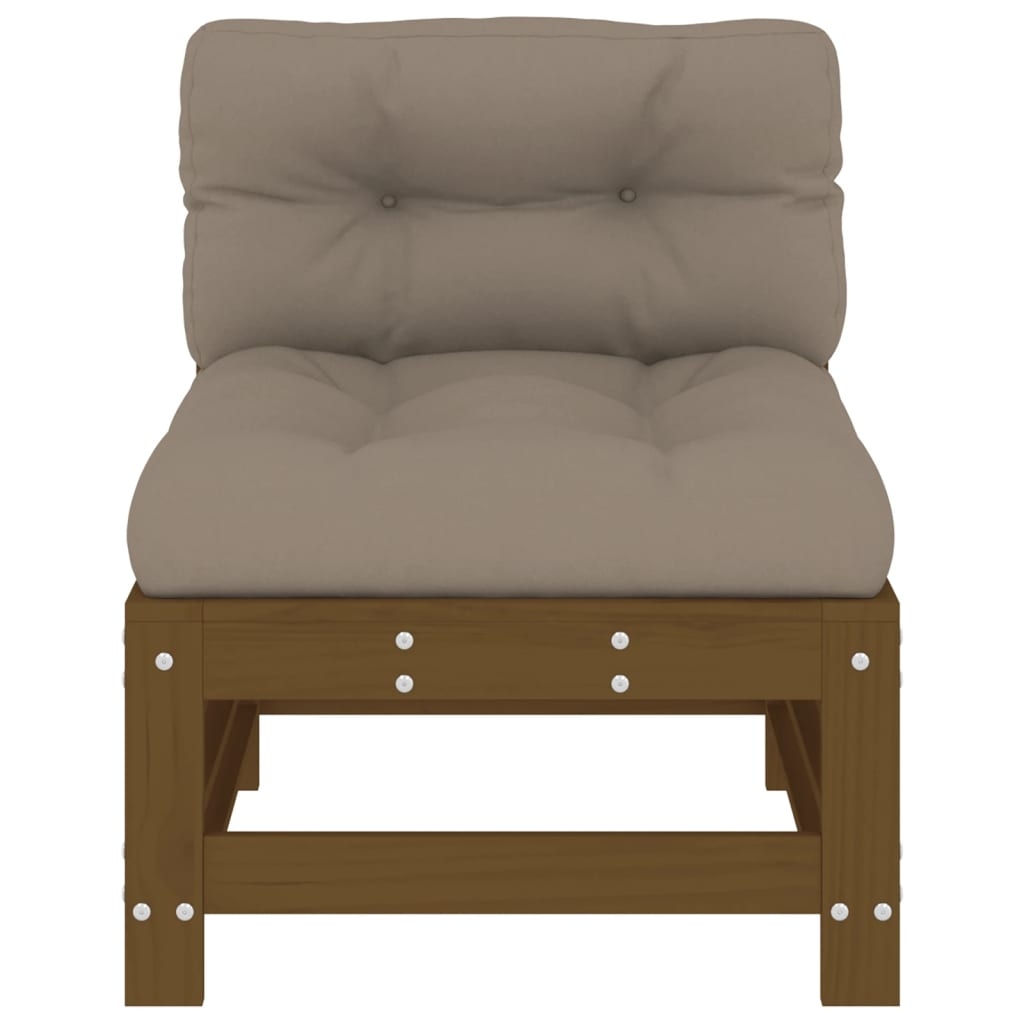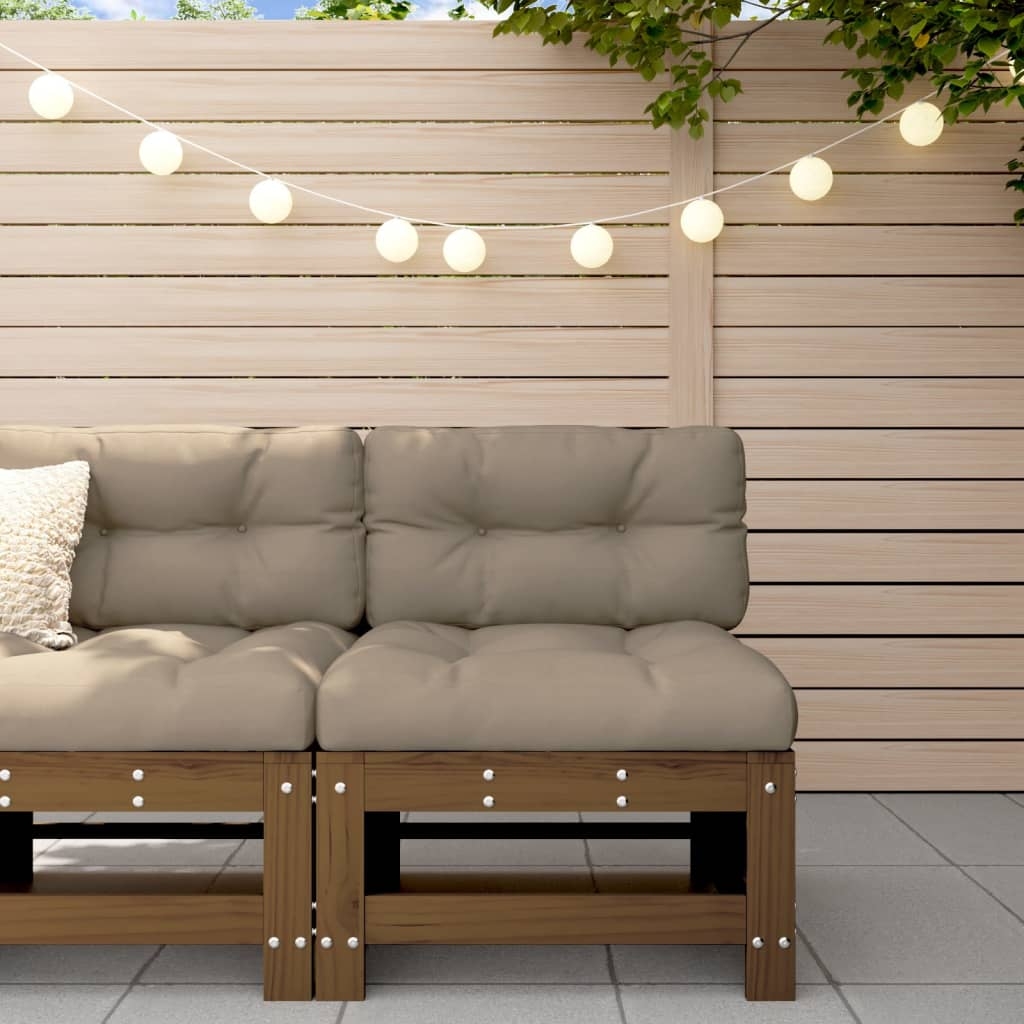 Dieses Mittelsofa aus Holz, das sich durch sein Latten-Design und weiche Kissen auszeichnet, ist eine tolle Ergänzung zu deinem Garten, Innenhof oder deiner Terrasse, um gemütliche Stunden mit deiner Familie oder deinen Freunden zu verbringen. Massives Kiefernholz: Massives Kiefernholz ist ein wunderschönes Naturmaterial. Kiefernholz weist eine gerade Maserung auf und die Aststellen verleihen dem Material seine charakteristische, rustikale Optik.Robuster und stabiler Rahmen: Dank des Holzrahmens ist das Gartensofa robust, stabil und für den täglichen Einsatz im Außenbereich geeignet.Bequemes Sitzerlebnis: Die Rückenlehne sorgt für zusätzlichen Sitzkomfort auf dem Outdoor-Sofa. Zum hohen Sitzkomfort trägt auch das dick gepolsterte Kissen bei.Modulares Design: Das modulare Sofa lässt sich flexibel und einfach umstellen. Du kannst es mit anderen modularen Elementen aus unserem Webshop kombinieren, um dein ganz persönliches Garten-Lounge-Set zusammenzustellen! Gut zu wissen:Damit deine Gartenmöbel lange schön bleiben, empfehlen wir dir, sie mit einer wasserdichten Hülle zu schützen.