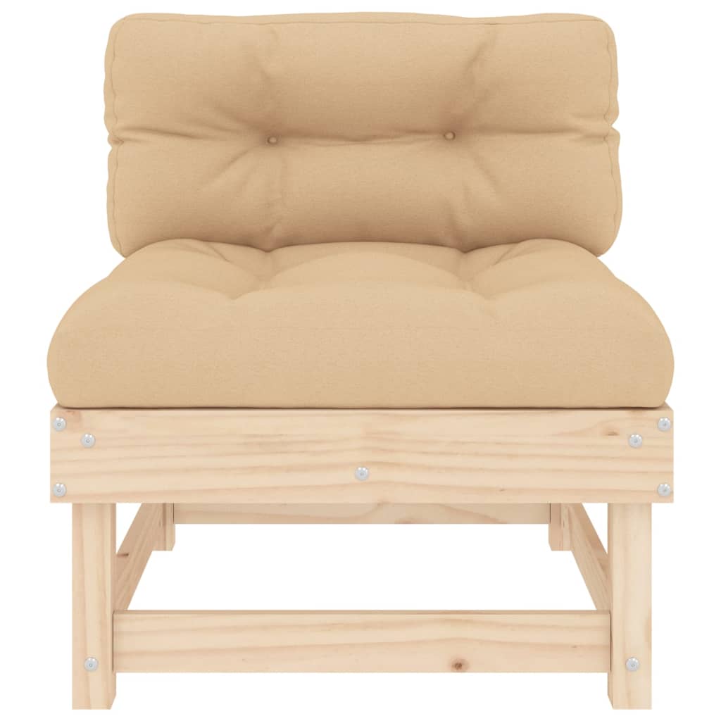 Dieses Mittelsofa aus Holz, das sich durch sein Latten-Design und weiche Kissen auszeichnet, ist eine tolle Ergänzung zu deinem Garten, Innenhof oder deiner Terrasse, um gemütliche Stunden mit deiner Familie oder deinen Freunden zu verbringen. Massives Kiefernholz: Massives Kiefernholz ist ein wunderschönes Naturmaterial. Kiefernholz weist eine gerade Maserung auf und die Aststellen verleihen dem Material seine charakteristische, rustikale Optik.Robuster und stabiler Rahmen: Dank des Holzrahmens ist das Gartensofa robust, stabil und für den täglichen Einsatz im Außenbereich geeignet.Bequemes Sitzerlebnis: Die Rückenlehne sorgt für zusätzlichen Sitzkomfort auf dem Outdoor-Sofa. Zum hohen Sitzkomfort trägt auch das dick gepolsterte Kissen bei.Modulares Design: Das modulare Sofa lässt sich flexibel und einfach umstellen. Du kannst es mit anderen modularen Elementen aus unserem Webshop kombinieren, um dein ganz persönliches Garten-Lounge-Set zusammenzustellen! Gut zu wissen:Damit deine Gartenmöbel lange schön bleiben, empfehlen wir dir, sie mit einer wasserdichten Hülle zu schützen.