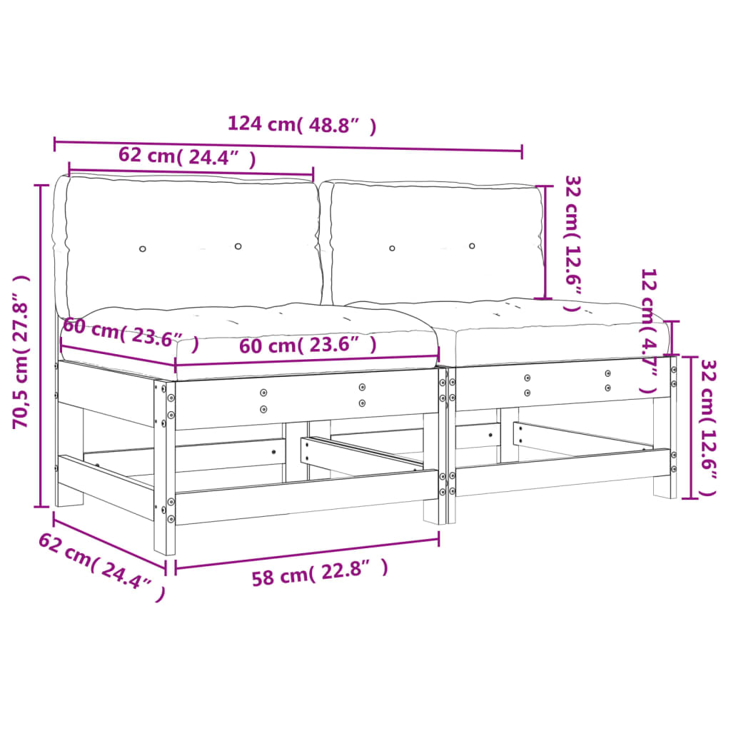 Diese Mittelsofas aus Holz, die sich durch ihr Latten-Design und die weichen Kissen auszeichnen, sind eine tolle Ergänzung zu deinem Garten, Innenhof oder deiner Terrasse, um gemütliche Stunden mit deiner Familie oder deinen Freunden zu verbringen. Massives Kiefernholz: Massives Kiefernholz ist ein wunderschönes Naturmaterial. Kiefernholz weist eine gerade Maserung auf und die Aststellen verleihen dem Material seine charakteristische, rustikale Optik.Robuster und stabiler Rahmen: Dank des Holzrahmens ist das Gartensofa robust, stabil und für den täglichen Einsatz im Außenbereich geeignet.Bequemes Sitzerlebnis: Die Rückenlehne sorgt für zusätzlichen Sitzkomfort auf dem Outdoor-Sofa. Zum hohen Sitzkomfort trägt auch das dick gepolsterte Kissen bei.Modulares Design: Das modulare Sofa lässt sich flexibel und einfach umstellen. Du kannst es mit anderen modularen Elementen aus unserem Webshop kombinieren, um dein ganz persönliches Garten-Lounge-Set zusammenzustellen! Gut zu wissen:Damit deine Gartenmöbel lange schön bleiben, empfehlen wir dir, sie mit einer wasserdichten Hülle zu schützen.