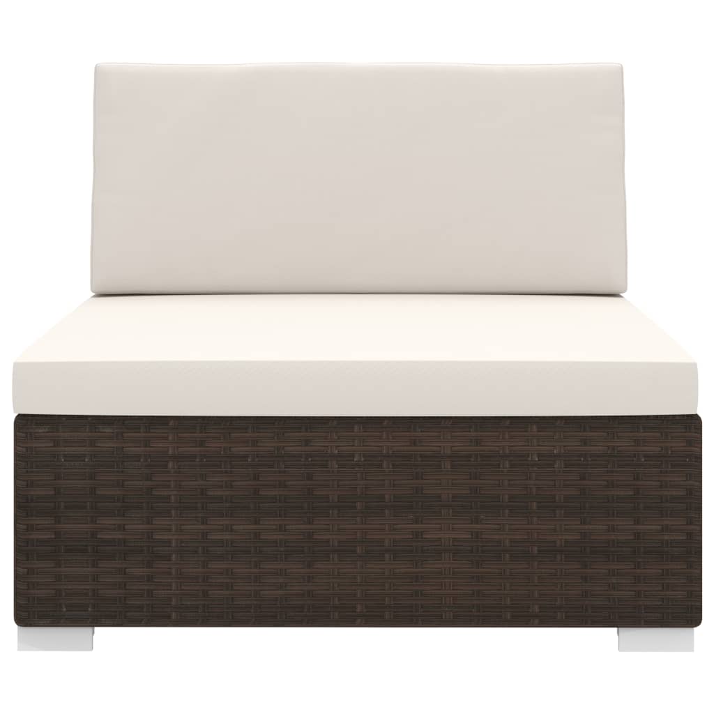 Dieses Rattan-Sofa-Mittelteil kombiniert Stil und Funktionalität und lässt sich das ganze Jahr über im Außenbereich verwenden. Dank des witterungsbeständigen und wasserfesten PE-Rattans ist das Sofa-Mittelstück ohne Armlehnen besonders pflegeleicht, strapazierfähig und für den täglichen Gebrauch bestens geeignet. Der Sitz verfügt über ein stabiles, pulverbeschichtetes Stahlgestell, das sehr langlebig ist. Das Möbelstück ist außerdem leicht und modular nutzbar, wodurch es völlig flexibel und einfach zu umstellen ist; dadurch kann es sich jeder Raumform wunderbar anpassen. Die dicken, abnehmbaren Sitzpolster sind sehr bequem. Sie können dieses Möbelstück mit anderen Modular-Sofateilen und Fußhockern kombinieren, die im Dropdown-Menü verfügbar sind, und somit Ihre persönliche Gartenlounge-Set-Konfiguration erstellen! Beispiele dazu finden Sie in den letzten 9 Bildern. Lieferung umfasst 1 Sofa-Mittelstück, 1 Sitzauflage und 1 Rückenpolster. Hinweis: Wir empfehlen Ihnen, das Möbelstück bei Regen, Schnee oder Frost abzudecken.