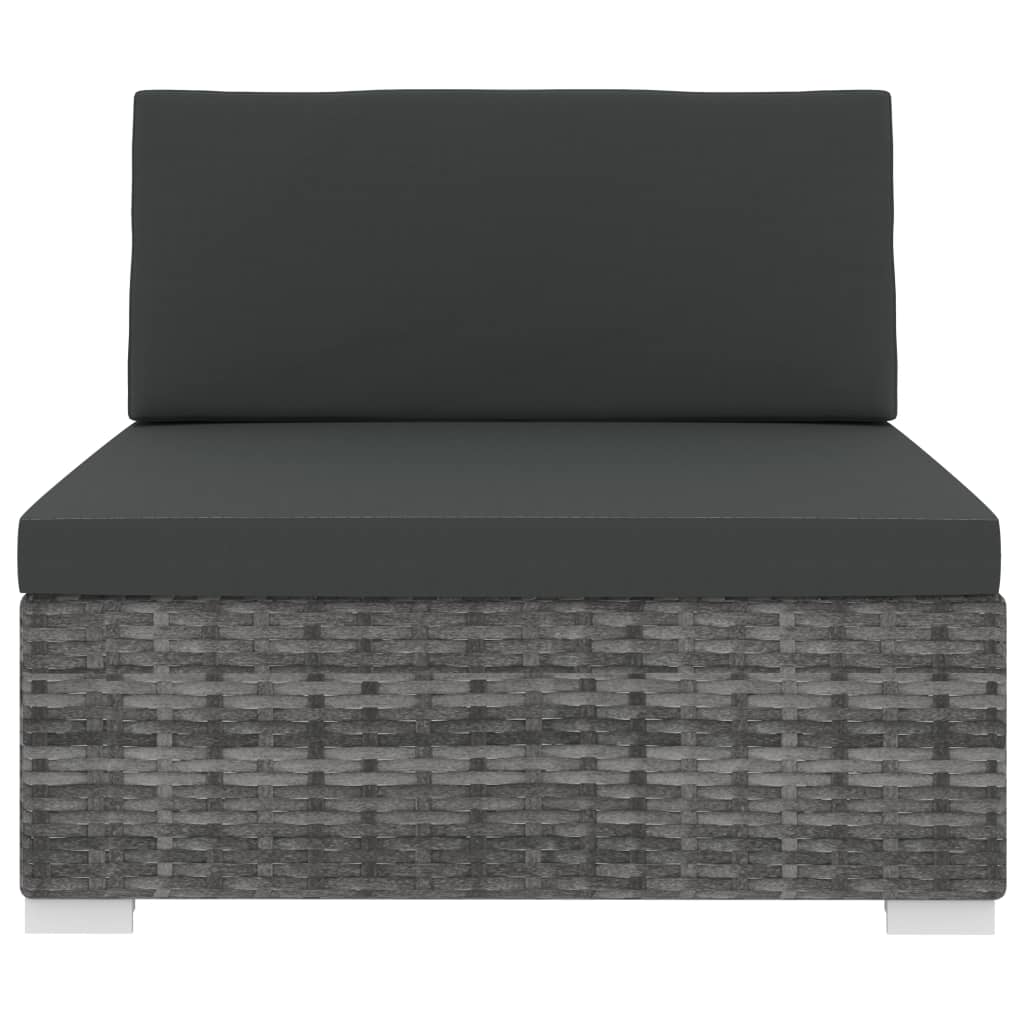 Dieses Rattan-Sofa-Mittelteil kombiniert Stil und Funktionalität und lässt sich das ganze Jahr über im Außenbereich verwenden. Dank des witterungsbeständigen und wasserfesten PE-Rattans ist das Sofa-Mittelstück ohne Armlehnen besonders pflegeleicht, strapazierfähig und für den täglichen Gebrauch bestens geeignet. Der Sitz verfügt über ein stabiles, pulverbeschichtetes Stahlgestell, das sehr langlebig ist. Das Möbelstück ist außerdem leicht und modular nutzbar, wodurch es völlig flexibel und einfach zu umstellen ist; dadurch kann es sich jeder Raumform wunderbar anpassen. Die dicken, abnehmbaren Sitzpolster sind sehr bequem. Sie können dieses Möbelstück mit anderen Modular-Sofateilen und Fußhockern kombinieren, die im Dropdown-Menü verfügbar sind, und somit Ihre persönliche Gartenlounge-Set-Konfiguration erstellen! Beispiele dazu finden Sie in den letzten 9 Bildern. Lieferung umfasst 1 Sofa-Mittelstück, 1 Sitzauflage und 1 Rückenpolster. Hinweis: Wir empfehlen Ihnen, das Möbelstück bei Regen, Schnee oder Frost abzudecken.
