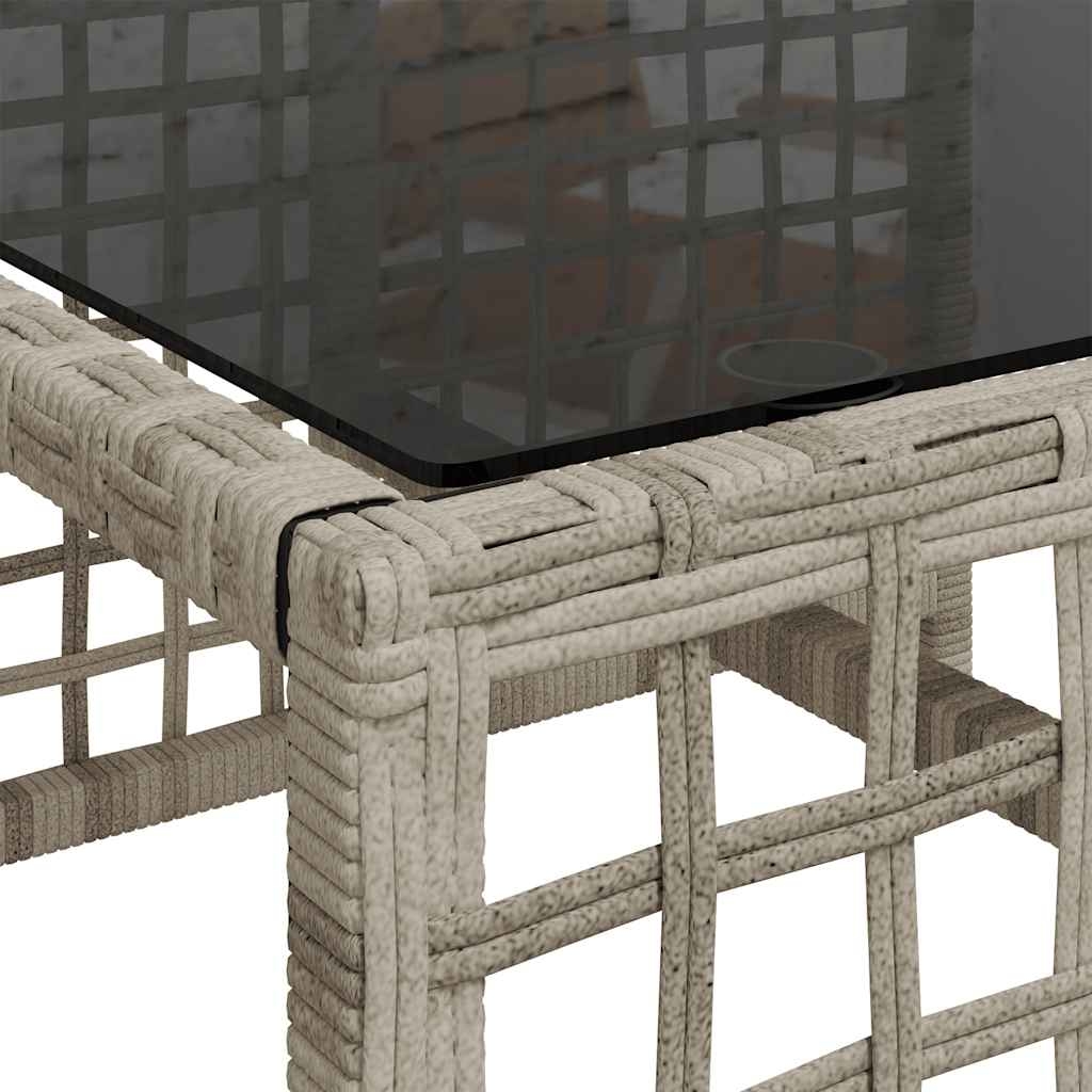 - Material: PE-Rattan, pulverbeschichteter Stahl, Hartglas
