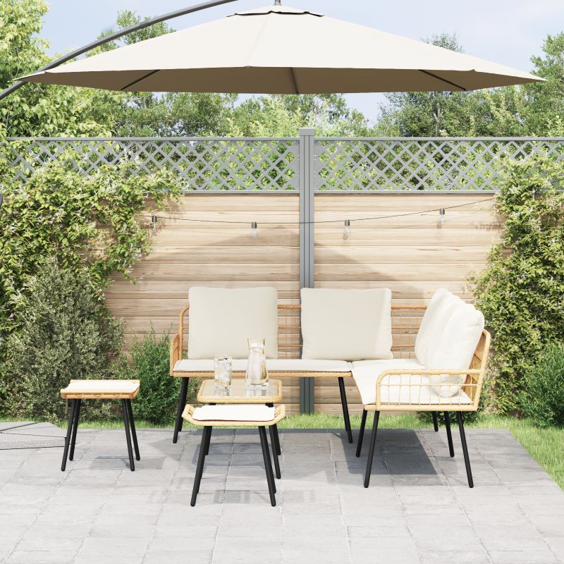 Das Outdoor Sofaset mit Tisch und Hocker ist perfekt fr alle, die coole und bequeme Mbel wollen. Ideal fr Essen im Freien, Entspannen oder einfach nur fr gesellige Abende. Die verstellbaren Armlehnen erlauben es dir, dich so bequem zu machen, wie du willst, und das schne Rattan-Design sieht klasse aus und hlt lange. Egal ob auf deinem Balkon, im Garten oder drinnen, dieses Set hat in jedem Raum Stil. Die abnehmbaren Kissen machen die Reinigung einfach, damit du mehr Zeit zum Entspannen hast. Mach deinen Komfort mit diesem Sofaset perfekt, das alles fr gesellige Stunden bietet.