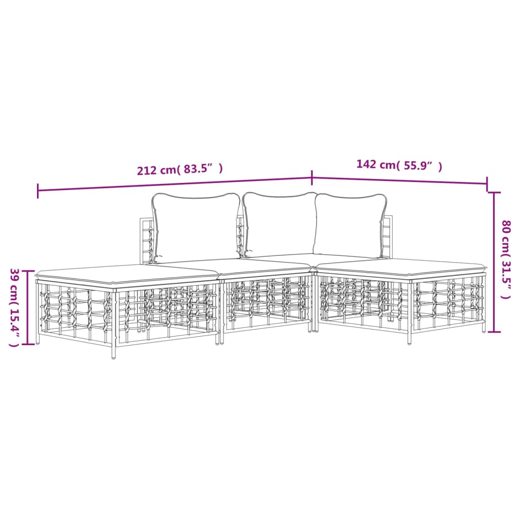Genieße eine gemütliche Zeit in deinem Außenbereich mit diesem Garten-Lounge-Set! Es ist eine perfekte Bereicherung für deinen Garten bzw. deine Terrasse und hinterlässt einen bleibenden Eindruck! Wetterfestes Material: Poly Rattan ist witterungsbeständig und lässt sich einfach reinigen. Seine Oberfläche weist lange Zeit eine ansprechende Optik auf. Es ist kostengünstiger als andere Materialien und bietet gleichzeitig hohe Qualität, Komfort und einen ästhetisches Look.Stabiler und robuster Rahmen: Der Stahlrahmen verleiht dem Lounge-Set Robustheit und Stabilität.Bequemes Sitzgefühl: Dank der Rückenlehnen bietet das Lounge-Set hohen Sitzkomfort. Zum hohen Sitzkomfort tragen auch die dick gepolsterten Kissen bei.Modulares Design: Die Gartengarnitur lässt sich flexibel und leicht umstellen und auch mit anderen modularen Elementen aus unserem Webshop kombinieren, um dein ganz persönliches Garten-Lounge-Set zu erstellen! Hinweis:Damit deine Gartenmöbel lange schön bleiben, empfehlen wir dir, sie mit einer wasserdichten Hülle zu schützen.