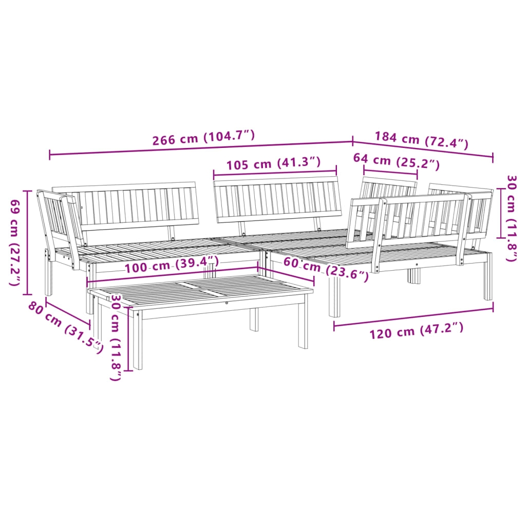 Diese Sofagarnitur aus Holz mit Latten-Design ist eine tolle Ergänzung zu deinem Garten, Innenhof oder deiner Terrasse, um gemütliche Stunden mit deiner Familie oder deinen Freunden zu verbringen. Langlebiges Material: Massives Akazienholz ist ein schönes Naturmaterial. Akazienholz ist ein tropisches Hartholz, das dicht, robust und langlebig ist.Stabile und pflegeleichte Tischplatte: Dieser Gartentisch besitzt eine Tischplatte aus Akazienholz, die robust und langlebig ist und sich leicht mit einem feuchten Tuch reinigen lässt.Gute Belüftung und Verhinderung von Ansammlungen: Das Latten-Design sorgt für eine optimale Luftzirkulation und verhindert effektiv, dass sich Wasser ansammelt, wodurch die Sitzfläche stets bequem trocken bleibt.Modulares Design: Dank des modularen Designs lassen sich die Gartenmöbel völlig flexibel und einfach umstellen, um deinen Außenbereich ganz individuell zu gestalten. Gut zu wissen:Wir empfehlen dir, deine Gartenmöbel mit einer wasserdichten Hülle zu schützen, um lange Zeit eine ansprechende Optik aufzuweisen.Bei diesem Palettensofa ist kein Kissen im Lieferumfang enthalten. Wir bieten jedoch Palettenkissen von 120x80 cm an. Du kannst in unserem Shop nach einem passenden Kissen suchen.