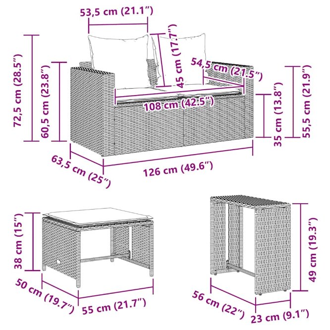 - Sitzhöhe vom Boden (ohne Kissen): 35 cm