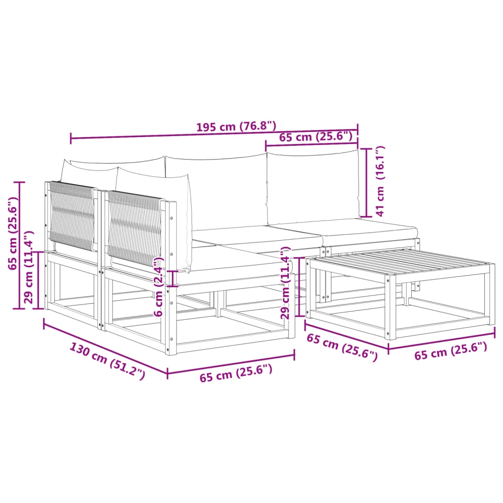 Diese Garten-Sofagarnitur ist die perfekte Ergänzung zu deinem Garten, deiner Terrasse oder deinem Innenhof. Sie bietet einen bequemen und einladenden Platz, um mit Familie und Freunden zu plaudern oder dich einfach nur zu entspannen und das Leben im Freien zu genießen. Robustes und stabiles Gestell: Massives Akazienholz ist für seine Festigkeit und Haltbarkeit bekannt. Seine vielfältige Farbe und seine einzigartige Maserung verleihen ihm eine attraktive Optik. Dank seiner ausgezeichneten Stabilität und Witterungsbeständigkeit eignet es sich ideal für die Herstellung von Innen- und Außenmöbeln.Bequemes Sitzerlebnis: Dieser Gartensessel mit dick gepolsterten Kissen bietet ein angenehmes Sitzgefühl.Abnehmbarer und waschbarer Bezug: Diese Sitzkissen verfügen über abnehmbare Bezüge für einfaches Waschen und Pflegen.Gut belüftet und Vermeidung von Wasseransammlungen: Das Latten-Design sorgt für eine optimale Luftzirkulation und verhindert effektiv, dass sich das Wasser auf der Tischplatte ansammelt, wodurch dieses Gartenmöbel trocken und so länger haltbar bleibt.Modulares Design: Dank des modularen Designs lassen sich die Gartenmöbel völlig flexibel und einfach umstellen, um deinen Außenbereich ganz individuell zu gestalten. Gut zu wissen:Wir empfehlen dir, deine Gartenmöbel mit einer wasserdichten Hülle zu schützen, um lange Zeit eine ansprechende Optik aufzuweisen.