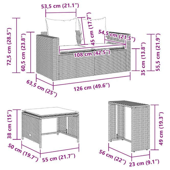 - Sitzhöhe vom Boden (ohne Kissen): 35 cm