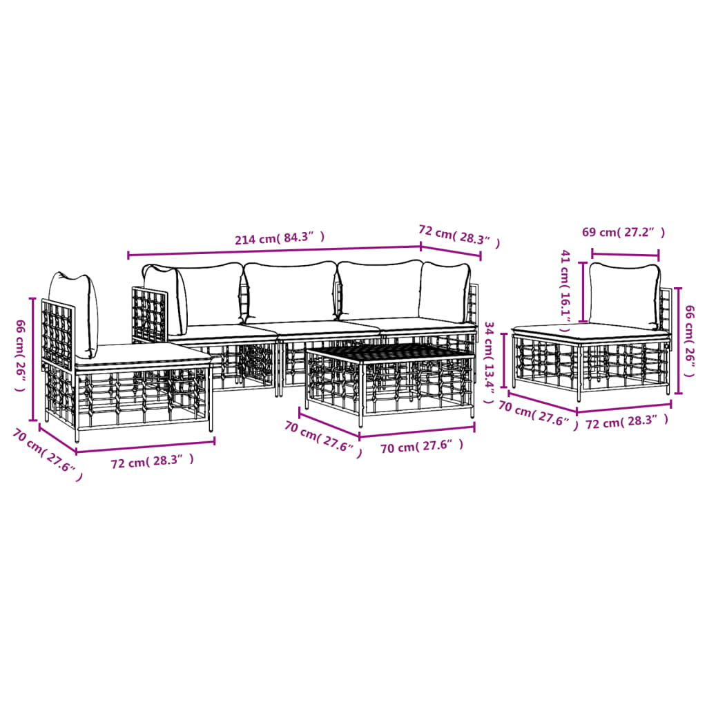 Genieße eine gemütliche Zeit in deinem Außenbereich mit diesem Garten-Lounge-Set! Es ist eine perfekte Bereicherung für deinen Garten bzw. deine Terrasse und hinterlässt einen bleibenden Eindruck! Wetterfestes Material: Poly Rattan ist witterungsbeständig und lässt sich einfach reinigen. Seine Oberfläche weist lange Zeit eine ansprechende Optik auf. Es ist kostengünstiger als andere Materialien und bietet gleichzeitig hohe Qualität, Komfort und einen ästhetisches Look.Stabiler und robuster Rahmen: Der Stahlrahmen verleiht dem Lounge-Set Robustheit und Stabilität.Bequemes Sitzgefühl: Dank der Rückenlehnen bietet das Lounge-Set hohen Sitzkomfort. Zum hohen Sitzkomfort tragen auch die dick gepolsterten Kissen bei.Robuste Tischplatte: Die stabile Tischplatte des Couchtisches bietet den perfekten Platz für Speisen, Getränke, Vasen, Obstschalen und verschiedene Dekoartikel.Modulares Design: Die Gartengarnitur lässt sich flexibel und leicht umstellen und auch mit anderen modularen Elementen aus unserem Webshop kombinieren, um dein ganz persönliches Garten-Lounge-Set zu erstellen! Hinweis:Damit deine Gartenmöbel lange schön bleiben, empfehlen wir dir, sie mit einer wasserdichten Hülle zu schützen.