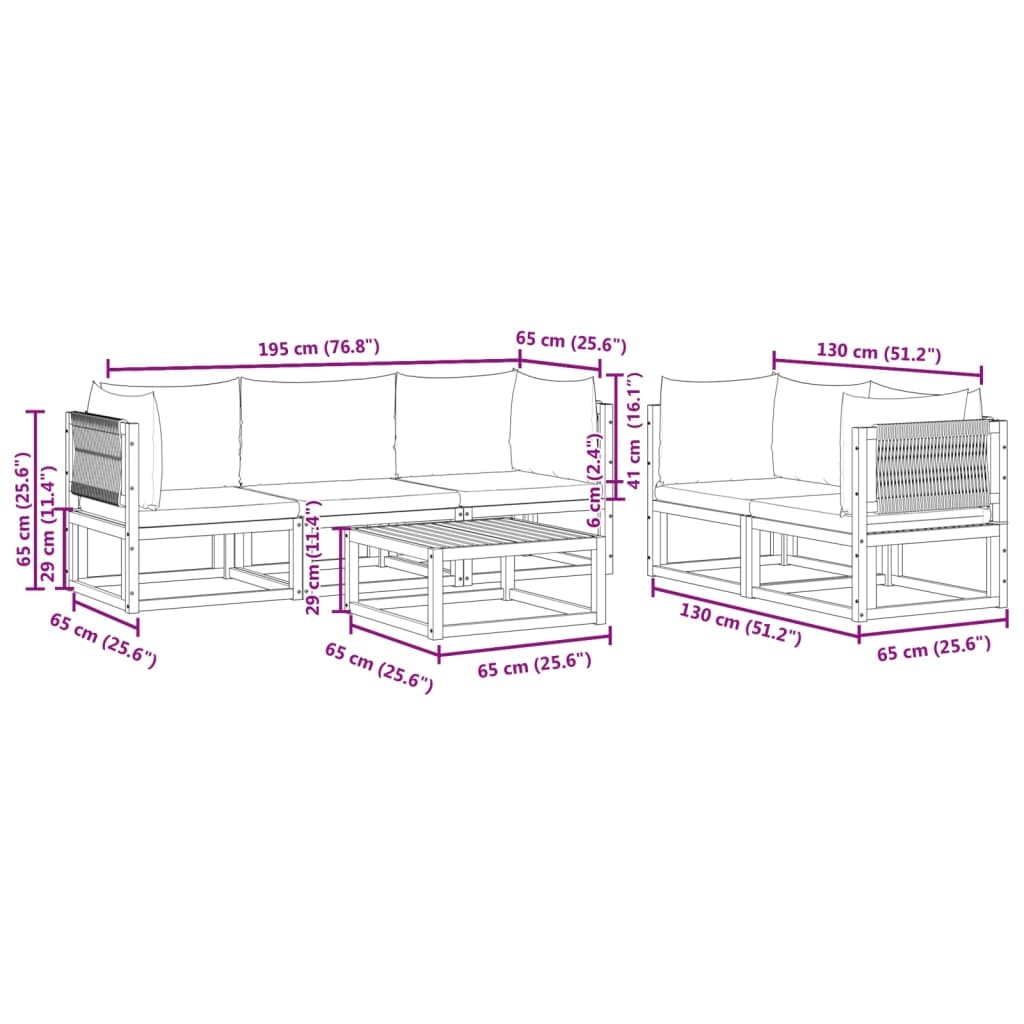 Diese Garten-Sofagarnitur ist die perfekte Ergänzung zu deinem Garten, deiner Terrasse oder deinem Innenhof. Sie bietet einen bequemen und einladenden Platz, um mit Familie und Freunden zu plaudern oder dich einfach nur zu entspannen und das Leben im Freien zu genießen. Robustes und stabiles Gestell: Massives Akazienholz ist für seine Festigkeit und Haltbarkeit bekannt. Seine vielfältige Farbe und seine einzigartige Maserung verleihen ihm eine attraktive Optik. Dank seiner ausgezeichneten Stabilität und Witterungsbeständigkeit eignet es sich ideal für die Herstellung von Innen- und Außenmöbeln.Bequemes Sitzerlebnis: Dieser Gartensessel mit dick gepolsterten Kissen bietet ein angenehmes Sitzgefühl.Abnehmbarer und waschbarer Bezug: Diese Sitzkissen verfügen über abnehmbare Bezüge für einfaches Waschen und Pflegen.Gut belüftet und Vermeidung von Wasseransammlungen: Das Latten-Design sorgt für eine optimale Luftzirkulation und verhindert effektiv, dass sich das Wasser auf der Tischplatte ansammelt, wodurch dieses Gartenmöbel trocken und so länger haltbar bleibt.Modulares Design: Dank des modularen Designs lassen sich die Gartenmöbel völlig flexibel und einfach umstellen, um deinen Außenbereich ganz individuell zu gestalten. Gut zu wissen:Wir empfehlen dir, deine Gartenmöbel mit einer wasserdichten Hülle zu schützen, um lange Zeit eine ansprechende Optik aufzuweisen.