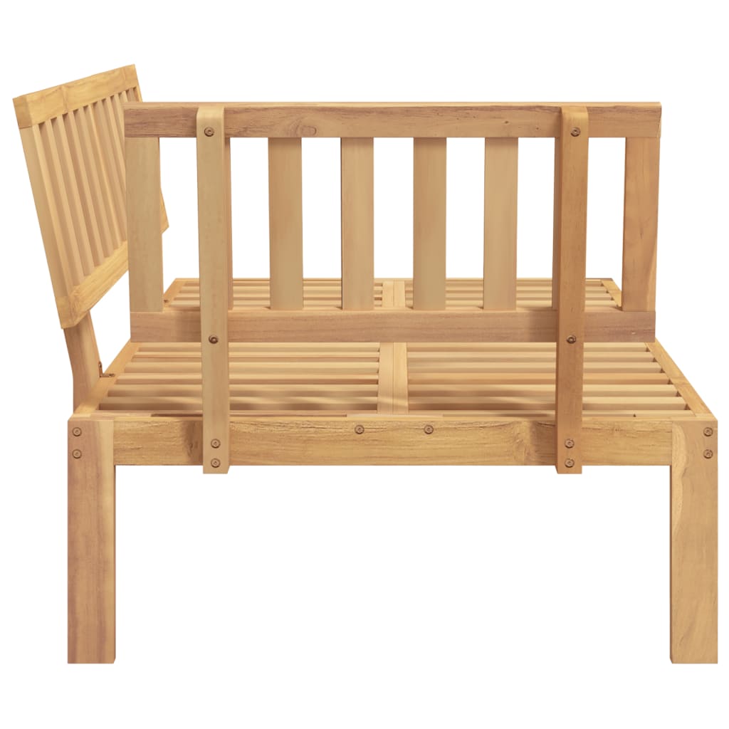 Dieses Garten-Ecksofa aus Holz mit Latten-Design ist eine tolle Ergänzung zu deinem Garten, Innenhof oder deiner Terrasse, um gemütliche Stunden mit deiner Familie oder deinen Freunden zu verbringen. Massives Akazienholz: Dieses Ecksofa ist aus massivem Akazienholz gefertigt. Massives Akazienholz ist ein schönes Naturmaterial. Akazienholz ist ein tropisches Hartholz, das dicht, robust und langlebig ist. Durch die Ölbehandlung ist das Sofa für den Außenbereich geeignet.Bequemes Sitzerlebnis: Die Rückenlehne sorgt für zusätzlichen Sitzkomfort auf dem Gartensofa. Modulares Design: Das modulare Sofa lässt sich flexibel und einfach umstellen. Du kannst es mit anderen modularen Sofa-Elementen kombinieren, die im Dropdown-Menü zur Auswahl stehen, um dein persönliches Outdoor-Lounge-Set nach Belieben zu erstellen! Gut zu wissen:Wir empfehlen dir, deine Gartenmöbel mit einer wasserdichten Hülle zu schützen, um lange Zeit eine ansprechende Optik aufzuweisen.Bei diesem Palettensofa ist kein Kissen im Lieferumfang enthalten. Wir bieten jedoch Palettenkissen von 120x80 cm an. Du kannst in unserem Shop nach einem passenden Kissen suchen.