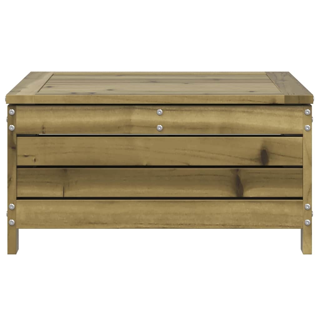 Dieser Outdoor-Hocker aus Holz ist eine großartige Ergänzung für den Garten, Innenhof, für die Terrasse usw. Auf diesem Outdoor-Möbel lässt es sich wunderbar mit Familie und Freunden plaudern oder einfach nur das Wetter genießen. Imprägniertes Kiefernholz: Die Kesseldruckimprägnierung ist ein Konservierungsverfahren, das mit Hilfe von Autoklaven durchgeführt wird. Sie erhöht die Resistenz gegen Fäulnis und Witterung.Vielseitig einsetzbar: Der Outdoor-Hocker kann nicht nur zum Sitzen oder Entspannen der Füße verwendet werden, er kann auch als Couchtisch genutzt werden, auf dem Getränke und Speisen abgestellt werden können. Dieses Outdoor-Loungemöbel bietet außerdem Stauraum unter der Sitzfläche.Latten-Design: Das Latten-Design verhindert die Ansammlung von Wasser auf dem Gartenstuhl, hält die Sitzfläche trocken und verhindert Verrottung.Modulares Design: Der modulare Fußhocker lässt sich flexibel und einfach umstellen. Du kannst es mit anderen modularen Gartensofa-Elementen kombinieren, die im Dropdown-Menü zur Auswahl stehen, um dein persönliches Outdoor-Lounge-Set nach Belieben zu erstellen! Gut zu wissen:Wir empfehlen dir, deine Gartenmöbel mit einer wasserdichten Hülle zu schützen, um lange Zeit eine ansprechende Optik aufzuweisen.