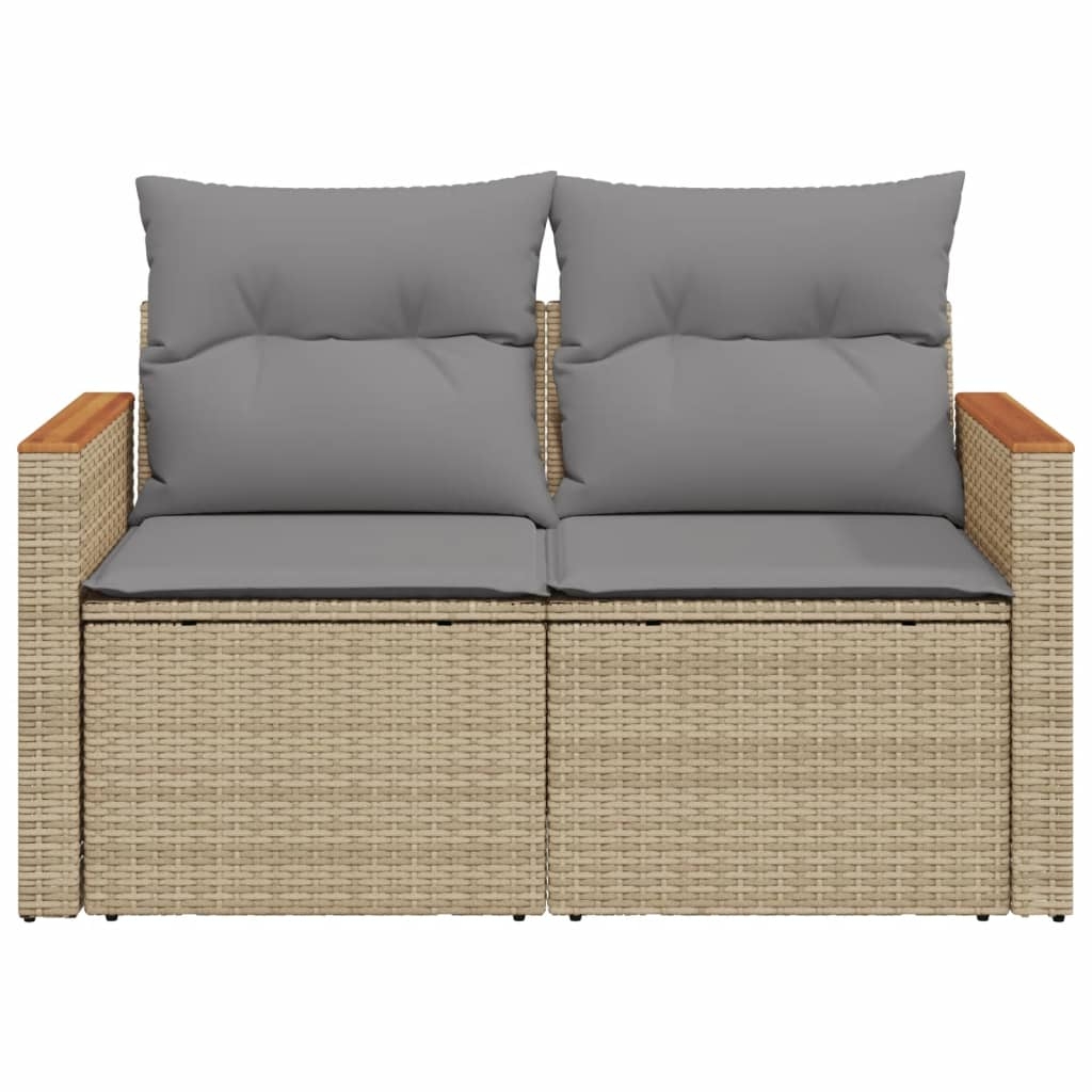 Entspanne dich und genieße die Natur auf diesem bequemen 2-Sitzer-Gartensofa! Langlebiges Material: PE-Rattan, auch als Poly Rattan bekannt, ist ein robustes, pflegeleichtes synthetisches Material, das die Optik von natürlichem Rattan aufweist. Es kennzeichnet sich durch ein geringes Eigengewicht und lässt sich einfach reinigen. Aufgrund seiner Haltbarkeit und Witterungsbeständigkeit wird es häufig bei der Herstellung von Gartenmöbeln verwendet.Stauraum mit wasserfestem Beutel: Jedes Gartensofa verfügt über ein Staufach unter der Sitzfläche, das mit einem wasserfesten Beutel zur Aufbewahrung von Kissen, Spielzeug und anderen Gegenständen versehen ist. Die Kissen sind mit Bezügen versehen und lassen sich mit Klettverschlüssen fest und sicher an den Sofas befestigen.Bequemes Sitzerlebnis: Dieser Gartensessel mit dick gepolsterten Kissen bietet ein angenehmes Sitzgefühl.Abnehmbarer und waschbarer Bezug: Diese Sitzkissen verfügen über abnehmbare Bezüge für einfaches Waschen und Pflegen.Modulares Design: Dank des modularen Designs lassen sich die Gartenmöbel völlig flexibel und einfach umstellen, um deinen Außenbereich ganz individuell zu gestalten. Gut zu wissen:Wir empfehlen dir, deine Gartenmöbel mit einer wasserdichten Hülle zu schützen, um lange Zeit eine ansprechende Optik aufzuweisen.