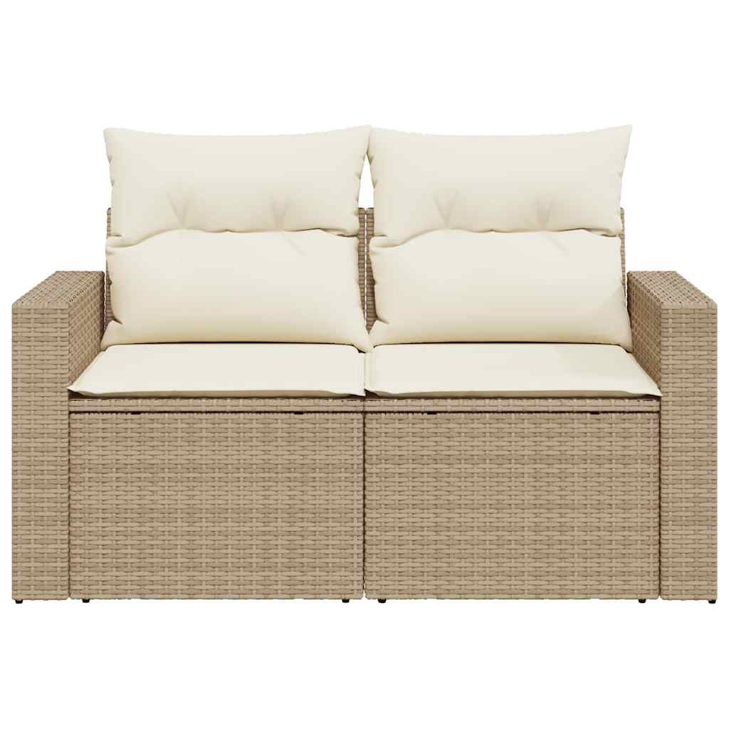 Entspanne dich und genieße die Natur auf diesem bequemen 2-Sitzer-Gartensofa! Langlebiges Material: PE-Rattan, auch als Poly Rattan bekannt, ist ein robustes, pflegeleichtes synthetisches Material, das die Optik von natürlichem Rattan aufweist. Es kennzeichnet sich durch ein geringes Eigengewicht und lässt sich einfach reinigen. Aufgrund seiner Haltbarkeit und Witterungsbeständigkeit wird es häufig bei der Herstellung von Gartenmöbeln verwendet.Stauraum mit wasserfestem Beutel: Jedes Gartensofa verfügt über ein Staufach unter der Sitzfläche, das mit einem wasserfesten Beutel zur Aufbewahrung von Kissen, Spielzeug und anderen Gegenständen versehen ist. Die Kissen sind mit Bezügen versehen und lassen sich mit Klettverschlüssen fest und sicher an den Sofas befestigen.Bequemes Sitzerlebnis: Dank der dick gepolsterten Kissen bietet das Gartensofa höchsten Sitzkomfort. Die breiten Armlehnen bieten zudem einen praktischen Platz, um dein Handy, Getränke oder andere Kleinigkeiten griffbereit zu halten.Abnehmbarer und waschbarer Bezug: Diese Sitzkissen verfügen über abnehmbare Bezüge für einfaches Waschen und Pflegen.Modulares Design: Dank des modularen Designs lassen sich die Gartenmöbel völlig flexibel und einfach umstellen, um deinen Außenbereich ganz individuell zu gestalten. Gut zu wissen:Wir empfehlen dir, deine Gartenmöbel mit einer wasserdichten Hülle zu schützen, um lange Zeit eine ansprechende Optik aufzuweisen.