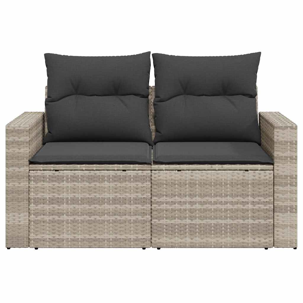 Entspanne dich und genieße die Natur auf diesem bequemen 2-Sitzer-Gartensofa! Langlebiges Material: PE-Rattan, auch als Poly Rattan bekannt, ist ein robustes, pflegeleichtes synthetisches Material, das die Optik von natürlichem Rattan aufweist. Es kennzeichnet sich durch ein geringes Eigengewicht und lässt sich einfach reinigen. Aufgrund seiner Haltbarkeit und Witterungsbeständigkeit wird es häufig bei der Herstellung von Gartenmöbeln verwendet.Bequemes Sitzerlebnis: Dank der dick gepolsterten Kissen bietet das Gartensofa höchsten Sitzkomfort. Die breiten Armlehnen bieten zudem einen praktischen Platz, um dein Handy, Getränke oder andere Kleinigkeiten griffbereit zu halten.Abnehmbarer und waschbarer Bezug: Diese Sitzkissen verfügen über abnehmbare Bezüge für einfaches Waschen und Pflegen.Modulares Design: Dank des modularen Designs lassen sich die Gartenmöbel völlig flexibel und einfach umstellen, um deinen Außenbereich ganz individuell zu gestalten. Gut zu wissen:Wir empfehlen dir, deine Gartenmöbel mit einer wasserdichten Hülle zu schützen, um lange Zeit eine ansprechende Optik aufzuweisen.