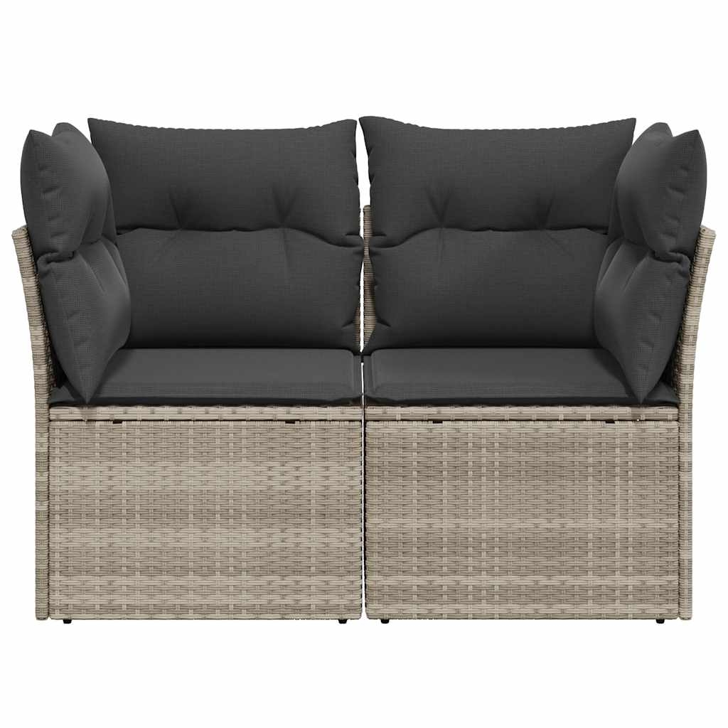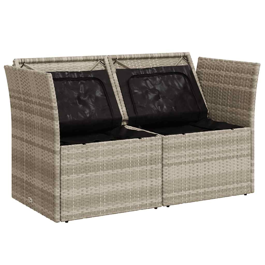 Entspanne dich und genieße die Natur auf diesem bequemen 2-Sitzer-Gartensofa! Langlebiges Material: PE-Rattan, auch als Poly Rattan bekannt, ist ein robustes, pflegeleichtes synthetisches Material, das die Optik von natürlichem Rattan aufweist. Es kennzeichnet sich durch ein geringes Eigengewicht und lässt sich einfach reinigen. Aufgrund seiner Haltbarkeit und Witterungsbeständigkeit wird es häufig bei der Herstellung von Gartenmöbeln verwendet.Stauraum mit wasserfestem Beutel: Jedes Gartensofa verfügt über ein Staufach unter der Sitzfläche, das mit einem wasserfesten Beutel zur Aufbewahrung von Kissen, Spielzeug und anderen Gegenständen versehen ist. Die Kissen sind mit Bezügen versehen und lassen sich mit Klettverschlüssen fest und sicher an den Sofas befestigen.Bequemes Sitzerlebnis: Dieser Gartensessel mit dick gepolsterten Kissen bietet ein angenehmes Sitzgefühl.Abnehmbarer und waschbarer Bezug: Diese Sitzkissen verfügen über abnehmbare Bezüge für einfaches Waschen und Pflegen.Modulares Design: Dank des modularen Designs lassen sich die Gartenmöbel völlig flexibel und einfach umstellen, um deinen Außenbereich ganz individuell zu gestalten. Gut zu wissen:Wir empfehlen dir, deine Gartenmöbel mit einer wasserdichten Hülle zu schützen, um lange Zeit eine ansprechende Optik aufzuweisen.