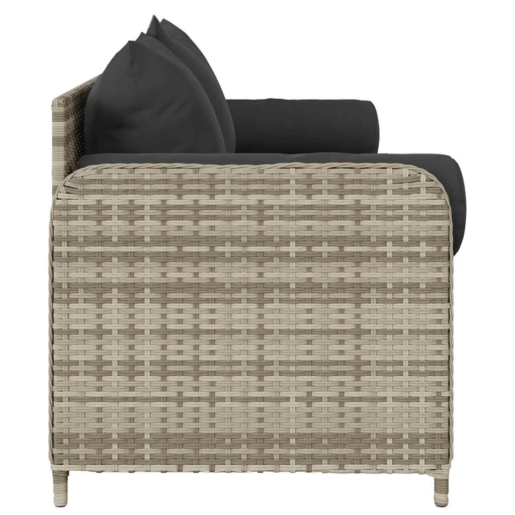 Entspanne dich und genieße die Natur auf diesem bequemen Gartensofa! Langlebiges Material: PE-Rattan, auch als Poly Rattan bekannt, ist ein robustes, pflegeleichtes synthetisches Material, das die Optik von natürlichem Rattan aufweist. Es kennzeichnet sich durch ein geringes Eigengewicht und lässt sich einfach reinigen. Aufgrund seiner Haltbarkeit und Witterungsbeständigkeit wird es häufig bei der Herstellung von Gartenmöbeln verwendet.Bequemes Sitzerlebnis: Dieses Gartensofa wird samt dick gepolsterten Kissen geliefert, um höchsten Sitzkomfort zu bieten.Abnehmbarer und waschbarer Bezug: Die Sitzkissen verfügen über abnehmbare Bezüge, die sich ganz einfach waschen und reinigen lassen. Dank der Klappen an der Rückseite können die Rückenkissen ganz einfach an den Rückenlehnen befestigt werden.Robuster und stabiler Rahmen: Dank des pulverbeschichteten Stahlrahmens ist das Möbelstück robust, stabil und für den täglichen Einsatz im Außenbereich geeignet. Gut zu wissen:Wir empfehlen dir, deine Gartenmöbel mit einer wasserdichten Hülle zu schützen, um lange Zeit eine ansprechende Optik aufzuweisen.