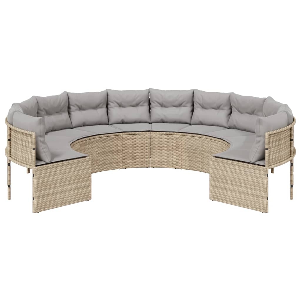 Dieses runde Gartensofa ist die perfekte Ergänzung zu deinem Garten, deiner Terrasse oder deinem Innenhof. Es bietet einen bequemen und einladenden Platz, um mit Familie und Freunden zu plaudern oder dich einfach nur zu entspannen und das Leben im Freien zu genießen. Langlebiges Material: PE-Rattan, auch als Poly Rattan bekannt, ist ein robustes, pflegeleichtes synthetisches Material, das die Optik von natürlichem Rattan aufweist. Es kennzeichnet sich durch ein geringes Eigengewicht und lässt sich einfach reinigen. Aufgrund seiner Haltbarkeit und Witterungsbeständigkeit wird es häufig bei der Herstellung von Gartenmöbeln verwendet.Bequemes Sitzerlebnis: Dieser Gartensessel mit dick gepolsterten Kissen bietet ein angenehmes Sitzgefühl.Abnehmbarer und waschbarer Bezug: Diese Sitzkissen verfügen über abnehmbare Bezüge für einfaches Waschen und Pflegen.Robuster und stabiler Rahmen: Dank des pulverbeschichteten Stahlrahmens ist das Möbelstück robust, stabil und für den täglichen Einsatz im Außenbereich geeignet. Gut zu wissen:Wir empfehlen dir, deine Gartenmöbel mit einer wasserdichten Hülle zu schützen, um lange Zeit eine ansprechende Optik aufzuweisen.