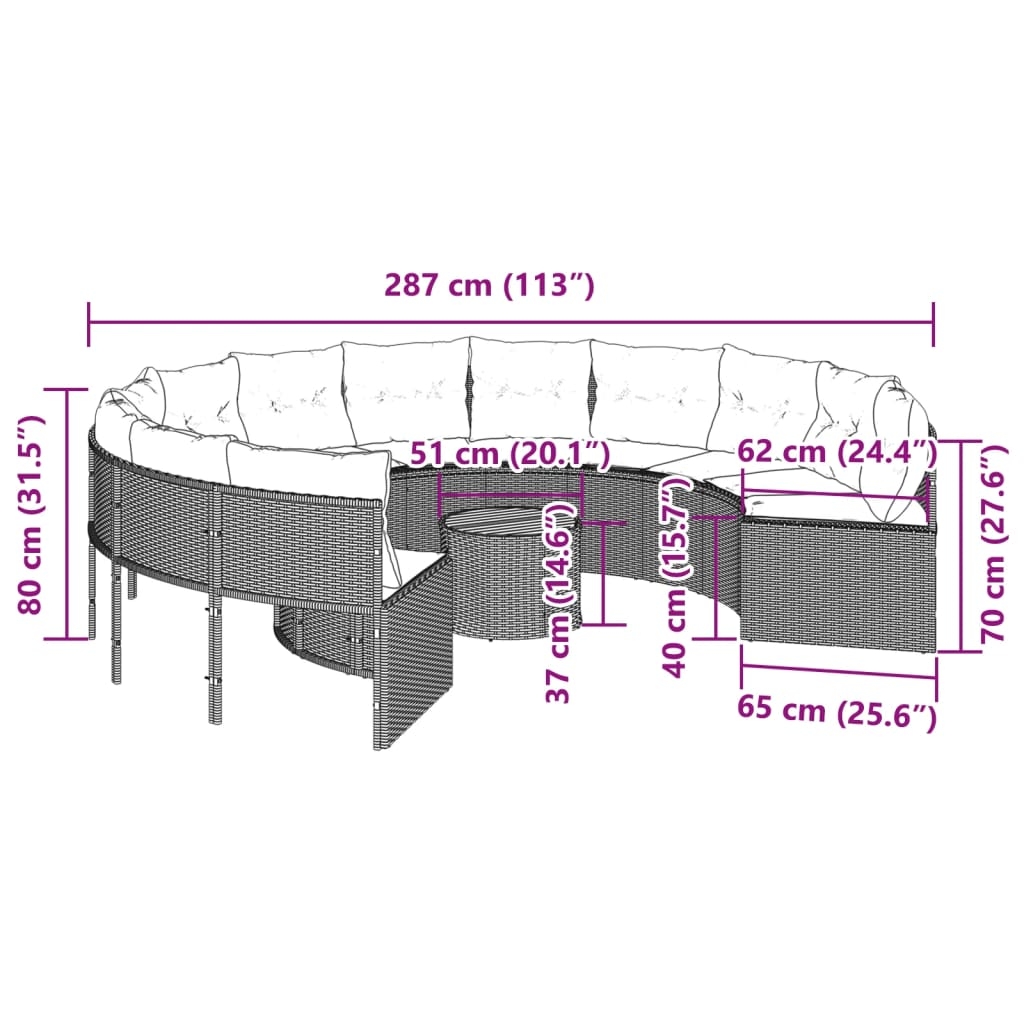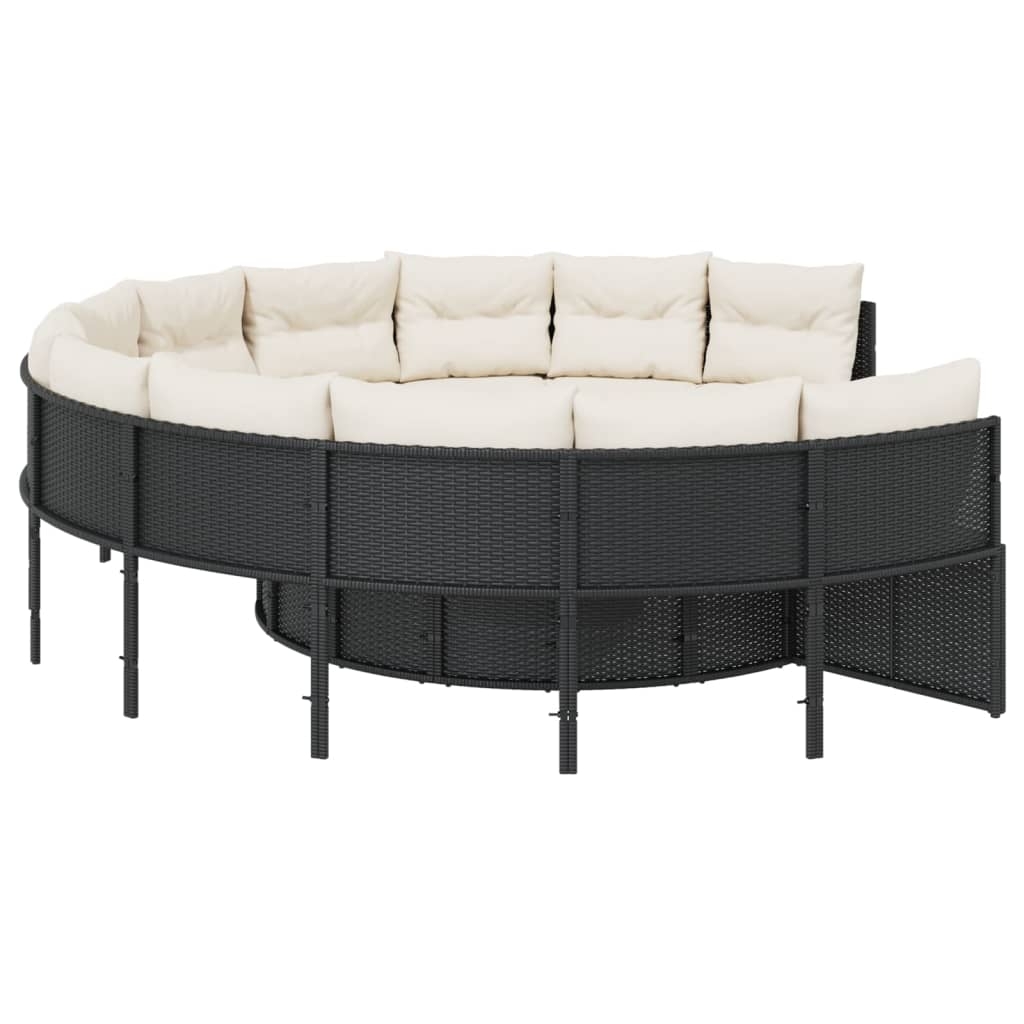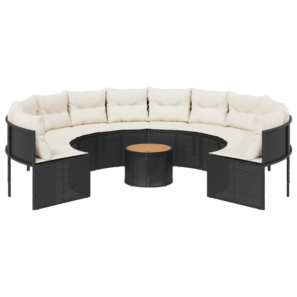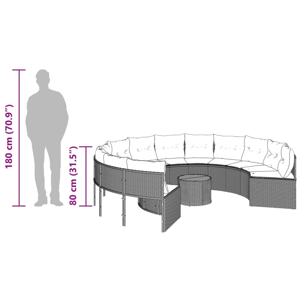 Dieses runde Gartensofa ist die perfekte Ergänzung zu deinem Garten, deiner Terrasse oder deinem Innenhof. Es bietet einen bequemen und einladenden Platz, um mit Familie und Freunden zu plaudern oder dich einfach nur zu entspannen und das Leben im Freien zu genießen. Langlebiges Material: PE-Rattan, auch als Poly Rattan bekannt, ist ein robustes, pflegeleichtes synthetisches Material, das die Optik von natürlichem Rattan aufweist. Es kennzeichnet sich durch ein geringes Eigengewicht und lässt sich einfach reinigen. Aufgrund seiner Haltbarkeit und Witterungsbeständigkeit wird es häufig bei der Herstellung von Gartenmöbeln verwendet.Bequemes Sitzerlebnis: Dieser Gartensessel mit dick gepolsterten Kissen bietet ein angenehmes Sitzgefühl.Abnehmbarer und waschbarer Bezug: Diese Sitzkissen verfügen über abnehmbare Bezüge für einfaches Waschen und Pflegen.Stabile und pflegeleichte Tischplatte: Dieser Gartentisch besitzt eine Tischplatte aus Akazienholz, die robust und langlebig ist und sich leicht mit einem feuchten Tuch reinigen lässt.Robuster und stabiler Rahmen: Dank des pulverbeschichteten Stahlrahmens ist das Möbelstück robust, stabil und für den täglichen Einsatz im Außenbereich geeignet. Gut zu wissen:Wir empfehlen dir, deine Gartenmöbel mit einer wasserdichten Hülle zu schützen, um lange Zeit eine ansprechende Optik aufzuweisen.