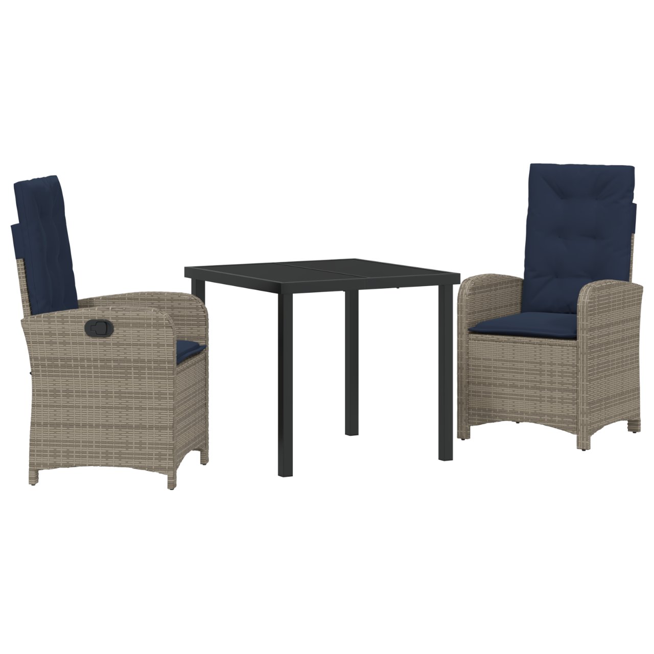 Dieses Set aus zwei Liegestühlen für den Garten kombiniert Stil und Komfort für entspannte Stunden im Freien. Das schicke graue Poly-Rattan-Geflecht und die navyblauen Kissen schaffen eine moderne Atmosphäre, die deine Terrasse oder deinen Balkon zum Eye-Catcher macht. Robustes Material: Die Stühle bestehen aus PE-Rattan, einem hochwertigen Material, das für seine Langlebigkeit bekannt ist. Sie sind wetterfest und behalten lange ihren schönen Look. Verstellbare Rückenlehne: Jeder Stuhl kommt mit einer verstellbaren Rückenlehne, die sich einfach mit einem Handgriff bedienen lässt, sodass du bequem deine beste Liegeposition findest. Bequeme Sitzmöglichkeiten: Die dicken Kissen sorgen für ein angenehmes Sitzerlebnis, sodass du lange draußen verweilen kannst. Und die abnehmbaren Bezüge sind leicht zu reinigen. Robustes Gestell: Aus pulverbeschichtetem Stahl gefertigt, sind diese Stühle ideal für den Outdoor-Einsatz. Ihr stabiles Design sorgt dafür, dass du lange Freude daran hast. Einfache Pflege: Mit abnehmbaren Kissenbezügen bleibt dein Sitzbereich immer frisch. Die Pflege deiner Gartenmöbel ist damit echt einfach.