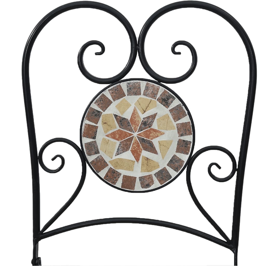 Mit ihrem Mosaik-Design werden diese Bistrostühle echte Hingucker in deinem Garten, auf dem Balkon oder der Terrasse sein. Stabile und pflegeleichte Oberplatte: Diese Gartenstühle verfügen über Sitzflächen aus Keramik, die robust und langlebig ist und sich leicht mit einem feuchten Tuch reinigen lassen.Robustes und stabiles Gestell: Dank des pulverbeschichteten Eisengestells sind die Klappstühle robust, stabil und für den täglichen Einsatz im Innen- und Außenbereich geeignet.Klappbares Design: Der Bistrostuhl kann zusammengeklappt werden, was bei Nichtverwendung Platz spart.Mosaik-Design: Mit ihrem Mosaik-Design schaffen die Gartenstühle eine mediterrane Atmosphäre in deinem Innen- oder Außenbereich. Gut zu wissen:Wir empfehlen dir, deine Gartenmöbel mit einer wasserdichten Hülle zu schützen, um lange Zeit eine ansprechende Optik aufzuweisen.