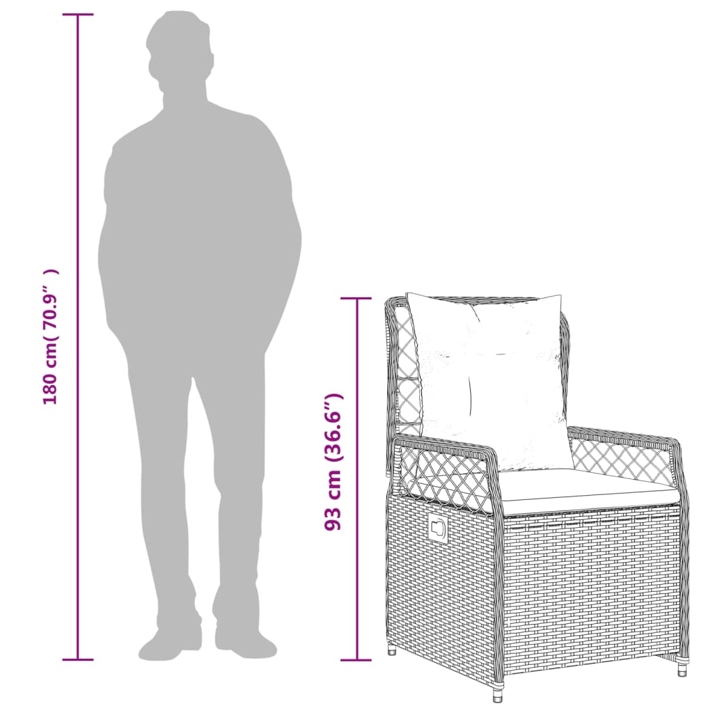 Entspanne dich und genieße die Natur in diesen bequemen Gartenstühlen! Langlebiges Material: PE-Rattan, auch als Poly Rattan bekannt, ist ein robustes, pflegeleichtes synthetisches Material, das die Optik von natürlichem Rattan aufweist. Es kennzeichnet sich durch ein geringes Eigengewicht und lässt sich einfach reinigen. Aufgrund seiner Haltbarkeit und Witterungsbeständigkeit wird es häufig bei der Herstellung von Gartenmöbeln verwendet. Verstellbare Rückenlehne: Der Gartensessel ist mit einem Griff versehen. So kannst du die Rückenlehne durch Ziehen des Griffs verstellen und sie danach schnell wieder in ihre ursprüngliche Position bringen. Bequemes Sitzerlebnis: Dieser Gartensessel mit dick gepolsterten Kissen bietet ein angenehmes Sitzgefühl. Abnehmbarer und waschbarer Bezug: Das Sitzkissen verfügt über einen abnehmbaren Bezug, der sich ganz einfach waschen und pflegen lässt. Robuster und stabiler Rahmen: Dank des pulverbeschichteten Stahlrahmens ist das Möbelstück robust, stabil und für den täglichen Einsatz im Außenbereich geeignet. Gut zu wissen:Wir empfehlen dir, deine Gartenmöbel mit einer wasserdichten Hülle zu schützen, um lange Zeit eine ansprechende Optik aufzuweisen.