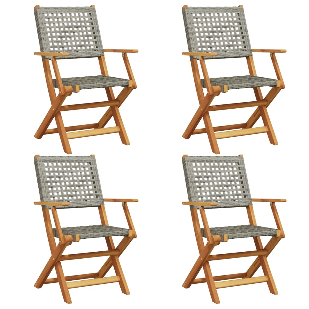 Entspanne dich und genieße die Natur auf diesen bequemen, klappbaren Gartenstühlen! Robust und stabil: Massives Akazienholz ist für seine Festigkeit und Haltbarkeit bekannt. Seine vielfältige Farbe und seine einzigartige Maserung verleihen ihm eine attraktive Optik. Dank seiner ausgezeichneten Stabilität und Witterungsbeständigkeit eignet es sich ideal für die Herstellung von Innen- und Außenmöbeln.Langlebiges Material: PE-Rattan, auch als Poly Rattan bekannt, ist ein robustes, pflegeleichtes synthetisches Material, das die Optik von natürlichem Rattan aufweist. Es kennzeichnet sich durch ein geringes Eigengewicht und lässt sich einfach reinigen. Aufgrund seiner Haltbarkeit und Witterungsbeständigkeit wird es häufig bei der Herstellung von Gartenmöbeln verwendet.Einfacher Transport und einfache Lagerung: Der Stuhl lässt sich bei Nichtgebrauch einfach zusammenklappen, um die Lagerung und den Transport zu erleichtern.Praktisches Design: Auf den praktischen Armlehnen aus Holz kannst du deine Arme bequem ausruhen, um deine Freizeit besser zu genießen.Vielseitig einsetzbar: Der Klappstuhl lässt sich vielseitig verwenden und findet Platz in jedem Outdoor-Bereich, sei es im Garten, auf der Terrasse oder auf dem Balkon. Gut zu wissen:Wir empfehlen dir, deine Gartenmöbel mit einer wasserdichten Hülle zu schützen, um lange Zeit eine ansprechende Optik aufzuweisen.