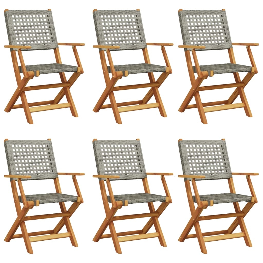 Entspanne dich und genieße die Natur auf diesen bequemen, klappbaren Gartenstühlen! Robust und stabil: Massives Akazienholz ist für seine Festigkeit und Haltbarkeit bekannt. Seine vielfältige Farbe und seine einzigartige Maserung verleihen ihm eine attraktive Optik. Dank seiner ausgezeichneten Stabilität und Witterungsbeständigkeit eignet es sich ideal für die Herstellung von Innen- und Außenmöbeln.Langlebiges Material: PE-Rattan, auch als Poly Rattan bekannt, ist ein robustes, pflegeleichtes synthetisches Material, das die Optik von natürlichem Rattan aufweist. Es kennzeichnet sich durch ein geringes Eigengewicht und lässt sich einfach reinigen. Aufgrund seiner Haltbarkeit und Witterungsbeständigkeit wird es häufig bei der Herstellung von Gartenmöbeln verwendet.Einfacher Transport und einfache Lagerung: Der Stuhl lässt sich bei Nichtgebrauch einfach zusammenklappen, um die Lagerung und den Transport zu erleichtern.Praktisches Design: Auf den praktischen Armlehnen aus Holz kannst du deine Arme bequem ausruhen, um deine Freizeit besser zu genießen.Vielseitig einsetzbar: Der Klappstuhl lässt sich vielseitig verwenden und findet Platz in jedem Outdoor-Bereich, sei es im Garten, auf der Terrasse oder auf dem Balkon. Gut zu wissen:Wir empfehlen dir, deine Gartenmöbel mit einer wasserdichten Hülle zu schützen, um lange Zeit eine ansprechende Optik aufzuweisen.