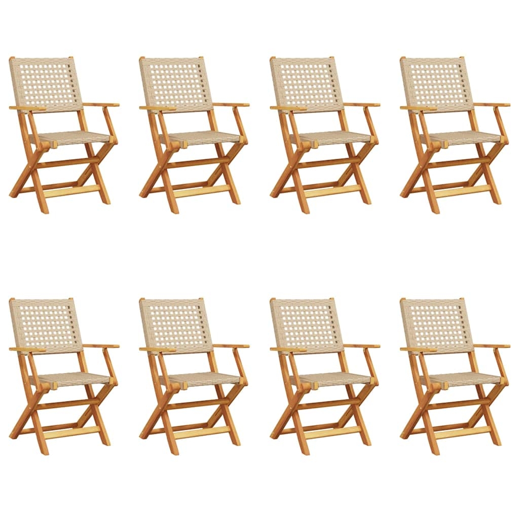 Entspanne dich und genieße die Natur auf diesen bequemen, klappbaren Gartenstühlen! Robust und stabil: Massives Akazienholz ist für seine Festigkeit und Haltbarkeit bekannt. Seine vielfältige Farbe und seine einzigartige Maserung verleihen ihm eine attraktive Optik. Dank seiner ausgezeichneten Stabilität und Witterungsbeständigkeit eignet es sich ideal für die Herstellung von Innen- und Außenmöbeln.Langlebiges Material: PE-Rattan, auch als Poly Rattan bekannt, ist ein robustes, pflegeleichtes synthetisches Material, das die Optik von natürlichem Rattan aufweist. Es kennzeichnet sich durch ein geringes Eigengewicht und lässt sich einfach reinigen. Aufgrund seiner Haltbarkeit und Witterungsbeständigkeit wird es häufig bei der Herstellung von Gartenmöbeln verwendet.Einfacher Transport und einfache Lagerung: Der Stuhl lässt sich bei Nichtgebrauch einfach zusammenklappen, um die Lagerung und den Transport zu erleichtern.Praktisches Design: Auf den praktischen Armlehnen aus Holz kannst du deine Arme bequem ausruhen, um deine Freizeit besser zu genießen.Vielseitig einsetzbar: Der Klappstuhl lässt sich vielseitig verwenden und findet Platz in jedem Outdoor-Bereich, sei es im Garten, auf der Terrasse oder auf dem Balkon. Gut zu wissen:Wir empfehlen dir, deine Gartenmöbel mit einer wasserdichten Hülle zu schützen, um lange Zeit eine ansprechende Optik aufzuweisen.