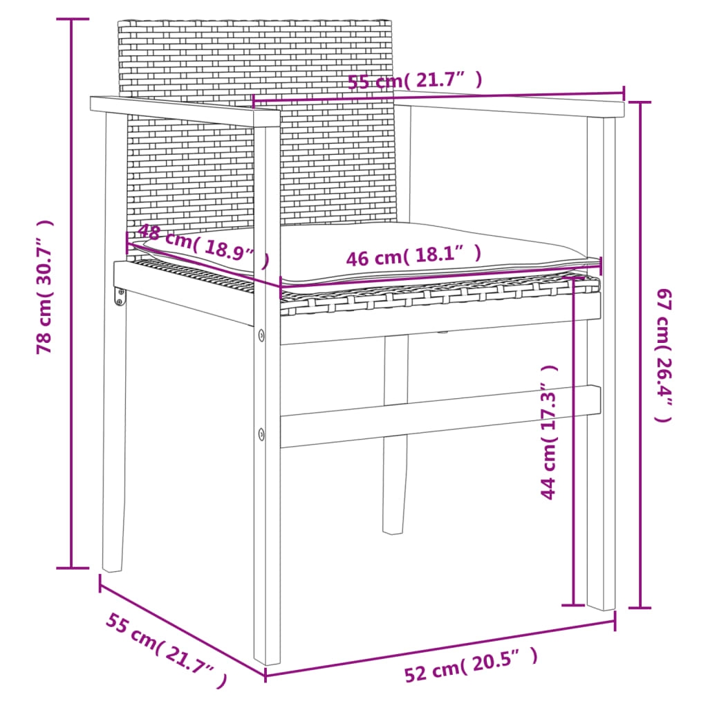 Entspanne dich und genieße die Natur in diesen bequemen Gartenstühlen! Langlebiges Material: PE-Rattan, auch als Poly Rattan bekannt, ist ein robustes, pflegeleichtes synthetisches Material, das die Optik von natürlichem Rattan aufweist. Es kennzeichnet sich durch ein geringes Eigengewicht und lässt sich einfach reinigen. Aufgrund seiner Haltbarkeit und Witterungsbeständigkeit wird es häufig bei der Herstellung von Gartenmöbeln verwendet.Bequemes Sitzerlebnis: Dieser Gartensessel mit dick gepolsterten Kissen bietet ein angenehmes Sitzgefühl.Abnehmbarer und waschbarer Bezug: Diese Sitzkissen verfügen über abnehmbare Bezüge für einfaches Waschen und Pflegen.Robustes und stabiles Gestell: Dank des Gestells aus Holz und pulverbeschichtetem Stahl ist das Möbelstück robust, stabil und für den täglichen Einsatz im Außenbereich geeignet. Gut zu wissen:Wir empfehlen dir, deine Gartenmöbel mit einer wasserdichten Hülle zu schützen, um lange Zeit eine ansprechende Optik aufzuweisen.