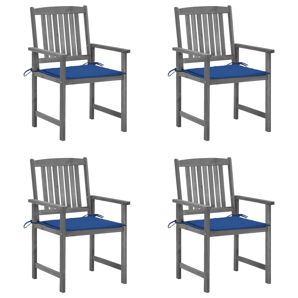 Dekorieren Sie Ihren Außenbereich mit diesen Gartenstühlen aus Holz mit Latten-Design, die einen Hauch von rustikalem Charme verleihen. Diese Gartenstühle bestehen aus massivem Akazienholz und sind daher robust und stabil. Die Kissen sorgen für zusätzlichen Komfort. Jedes Sitzkissen verfügt über zwei Schnüre, um es fest am Gartenstuhl zu befestigen.