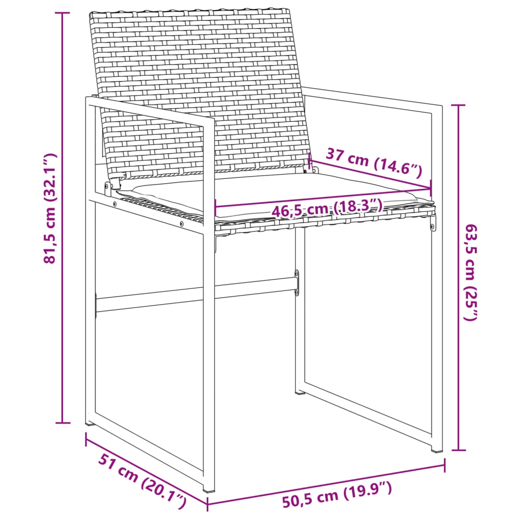 Entspanne dich und genieße die Natur in diesen bequemen Gartenstühlen! Langlebiges Material: PE-Rattan, auch als Poly Rattan bekannt, ist ein robustes, pflegeleichtes synthetisches Material, das die Optik von natürlichem Rattan aufweist. Es kennzeichnet sich durch ein geringes Eigengewicht und lässt sich einfach reinigen. Aufgrund seiner Haltbarkeit und Witterungsbeständigkeit wird es häufig bei der Herstellung von Gartenmöbeln verwendet.Bequemes Sitzerlebnis: Dieser Gartensessel mit dick gepolsterten Kissen bietet ein angenehmes Sitzgefühl.Platzsparende Aufbewahrung: Dank der klappbaren Rückenlehnen lassen sich diese Stühle platzsparend aufbewahren.Abnehmbarer und waschbarer Bezug: Diese Sitzkissen verfügen über abnehmbare Bezüge für einfaches Waschen und Pflegen.Robuster und stabiler Rahmen: Dank des pulverbeschichteten Stahlrahmens ist das Möbelstück robust, stabil und für den täglichen Einsatz im Außenbereich geeignet. Gut zu wissen:Wir empfehlen dir, deine Gartenmöbel mit einer wasserdichten Hülle zu schützen, um lange Zeit eine ansprechende Optik aufzuweisen.