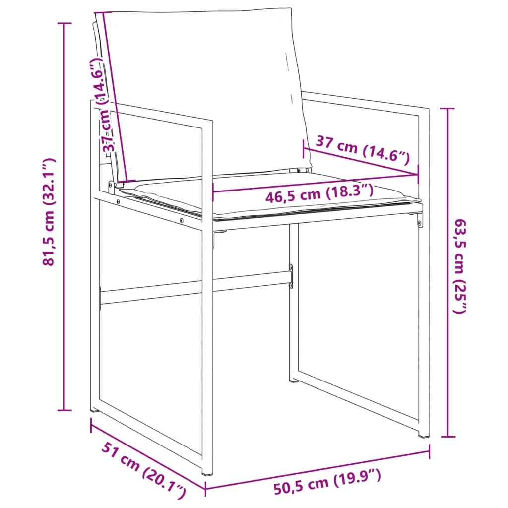 Entspanne dich und genieße die Natur in diesen bequemen Gartenstühlen! Strapazierfähig und langlebig: Textilene wird für seine Langlebigkeit, Wasserfestigkeit, Lichtbeständigkeit und einfache Pflege geschätzt, bietet großartigen Schutz vor UV-Strahlen und ist schimmelresistent, was es zur idealen Wahl für Gartenmöbel und Schattenspender macht.Robust und stabil: Stahl überzeugt durch seine Festigkeit, Haltbarkeit und Korrosionsbeständigkeit, was ihn zur idealen Wahl für verschiedene Anwendungen macht, einschließlich der Möbelherstellung und des Möbelbaus.Bequemes Sitzerlebnis: Dieser Gartensessel mit dick gepolsterten Kissen bietet ein angenehmes Sitzgefühl.Platzsparende Aufbewahrung: Dank der klappbaren Rückenlehnen lassen sich diese Stühle platzsparend aufbewahren.Abnehmbarer und waschbarer Bezug: Die Sitzkissen verfügen über abnehmbare Bezüge, die sich ganz einfach waschen und reinigen lassen. Dank der Klappen an der Rückseite können die Rückenkissen ganz einfach an den Rückenlehnen befestigt werden. Gut zu wissen:Wir empfehlen dir, deine Gartenmöbel mit einer wasserdichten Hülle zu schützen, um lange Zeit eine ansprechende Optik aufzuweisen.