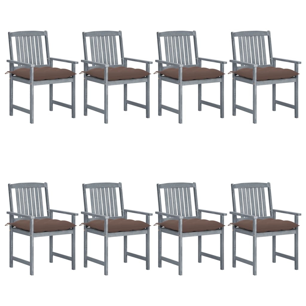 Verleihen Sie Ihrem Außenbereich mit diesem Gartenstuhl-Set aus Holz zusätzlichen Komfort. Es ist ideal geeignet, um mit Familie und Freunden zu plaudern oder einfach nur ein entspannendes Sonnenbad zu genießen! Dieses Gartenstuhl-Set besteht aus massivem Akazienholz mit grauer Lackierung. Massives Akazienholz ist ein Hartholz mit dichter Maserung, das nicht nur belastbar sondern auch verschleißfest ist. Diese Stühle aus Holz sind stabil, langlebig und witterungsbeständig. Darüber hinaus lässt sich die Stuhloberfläche ganz einfach mit einem feuchten Tuch reinigen. Die mitgelieferten Kissen sorgen für zusätzlichen Komfort. Hinweis: Um die Lebensdauer Ihrer Gartenmöbel zu verlängern, empfehlen wir Ihnen, diese regelmäßig zu reinigen und bei Nichtgebrauch im Freien abzudecken.Reinigung: Verwenden Sie eine milde SeifenlösungLagerung: Wenn möglich, an einem kühlen, trockenen Ort im Innenbereich lagern. Wenn das Produkt im Freien gelagert wird, schützen Sie es mit einer wasserdichten Abdeckung. Wischen und trocknen Sie das überschüssige Wasser oder den Schnee nach Regen oder Schneefall von der ebenen Fläche. Sorgen Sie für eine ausreichende Luftzirkulation, um feuchtigkeitsbedingte Schäden zu vermeiden.
