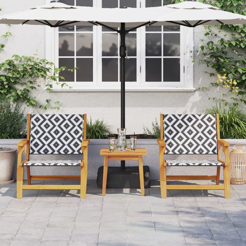 Das 2x Relax Chair mit Tisch Set ist perfekt fr alle, die Komfort und Stil im Freien suchen. Es enthlt zwei bequeme Sthle und einen eleganten Tisch, der deinen Balkon oder deine Terrasse aufwertet. Jeder Stuhl misst 67 cm in der Breite und 78 cm in der Tiefe ideal fr eine Person und super leicht. Hergestellt aus solidem Akazienholz und Schwarz-Wei-Rattan, ist es besonders langlebig und passt zu jeder Gartendekoration. Egal ob du einen ruhigen Tee geniet oder mit Freunden abhngst, dieses Set wird deine Entspannungszeit aufpeppen. Mit diesen Gartenmbeln richtest du dir einen gemtlichen Ort zum Relaxen unter der Sonne oder den Sternen ein.