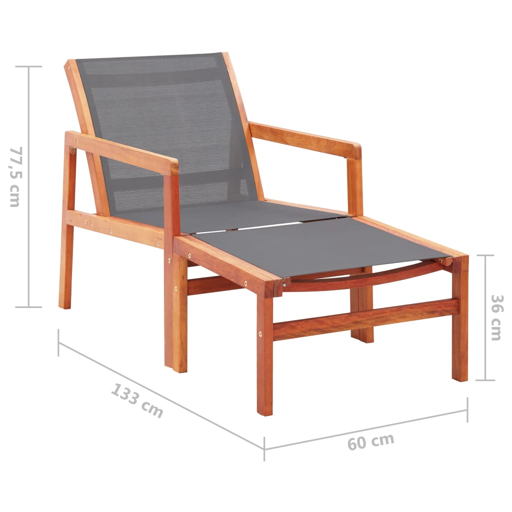 Dieser Garten-Liegestuhl mit Fußteil kombiniert Stil und Funktionalität und verleiht jedem Outdoor-Bereich einen Hauch von Charme. Dieses Gartenstuhl-Set ist aus Eukalyptus-Massivholz mit natürlicher Ölbehandlung gefertigt, wodurch es witterungsbeständig und äußerst langlebig ist. Es ist wunderbar für den Einsatz im Außenbereich geeignet. Dieser Gartensessel ist aus starkem und atmungsaktivem Textilene gefertigt und bietet so ultimativen Komfort in deiner Freizeit. Auf der Fußablage kannst du deine Füße ausruhen. Sie ist außerdem pflegeleicht und wartungsarm. Dieses Garten-Lounge-Set ist einfach zu montieren.
